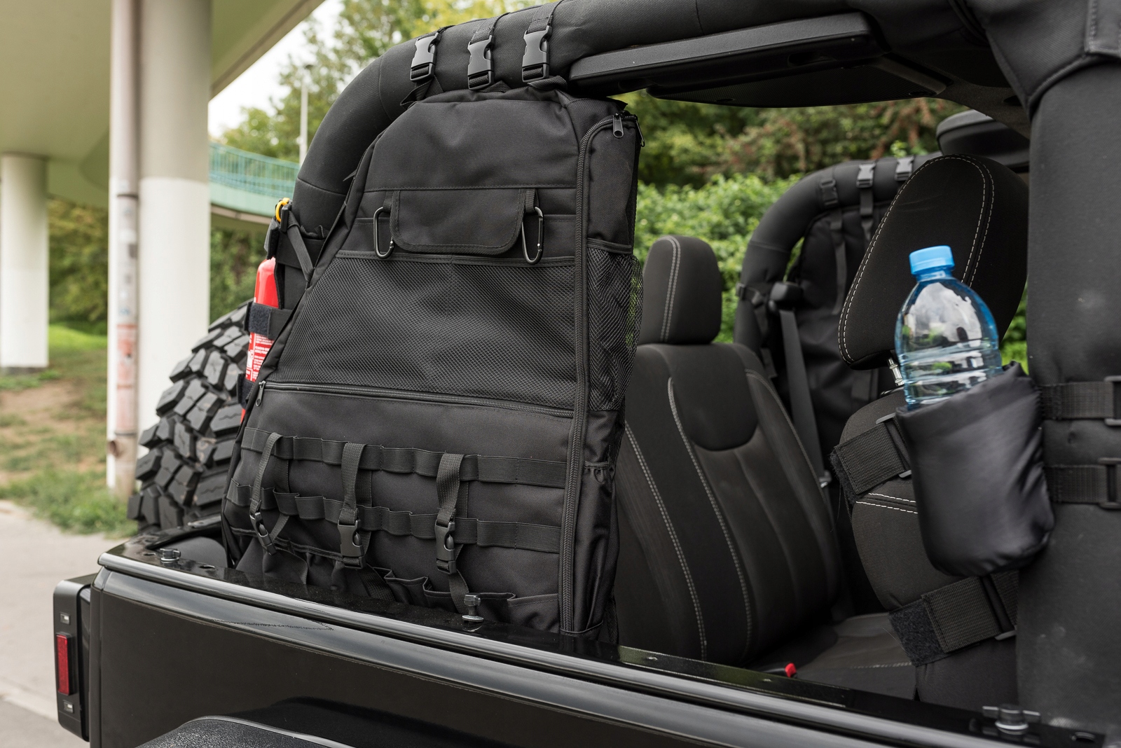 седельная сумка крепится при помощи специальной системы крепежных ремней к раме автомобиля. Седельная сумка оснащена системой крепления MOLLE, которую можно найти практически на любом военном рюкзаке или сумке, что напоминает военную родословную Wrangler. Это крепление чрезвычайно простое, просто протяните специальные ремни с зажимами через ремни в сумке. Система MOLLE гарантирует, что прикрепленные предметы и вещи, хранящиеся в них, не упадут с люка даже во время езды по тяжелой местности. п>