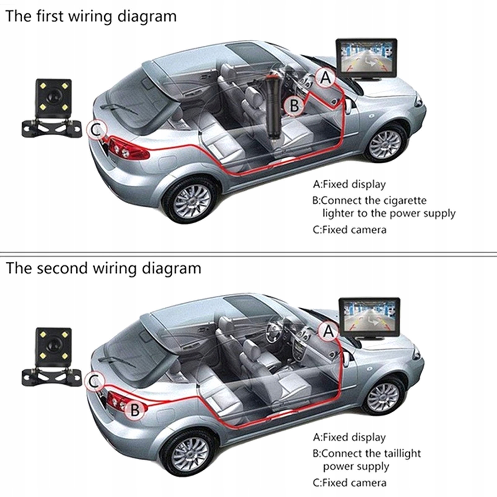 4. Применение: автомобильная камера заднего вида и монитор заднего вида 4.3 in TFT LCD, поддерживает только источник питания 12 в, поддерживает автомобильный dvd, VCD, камеру, STB, спутниковый ресивер и другое видеооборудование.