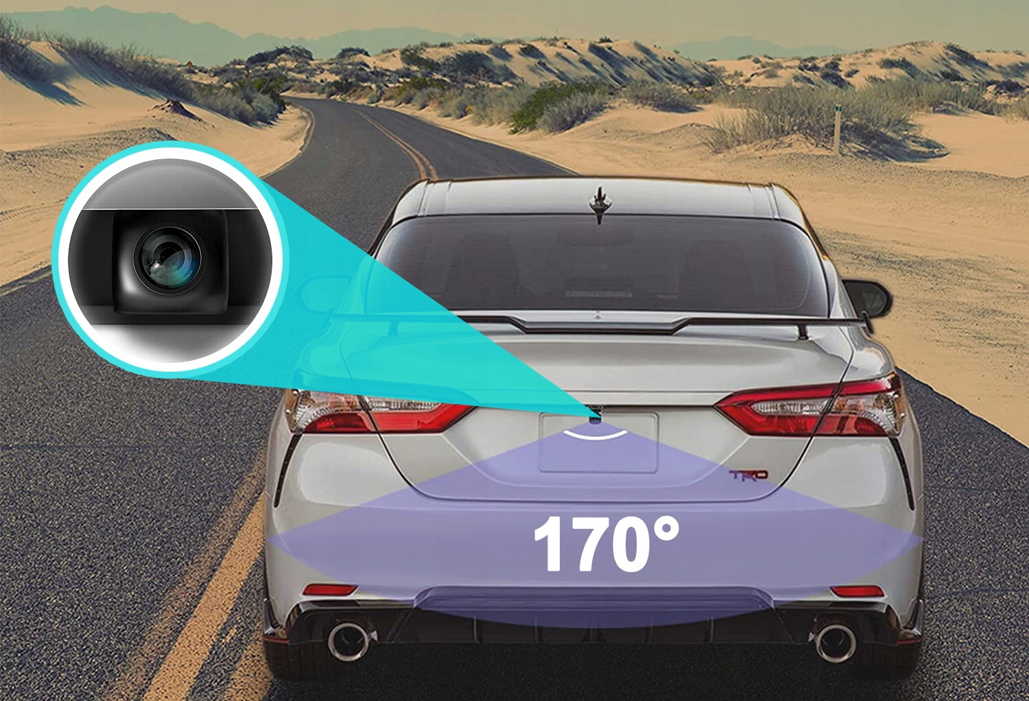 автоматическое включение камеры происходит при включении заднего хода. Объектив изготовлен по технологии анти-туман, который защищает от тумана. Камера поворачивается вертикально под углом 45 градусов, а ее изображение имеет интуитивно понятные направляющие для легкой парковки. Кроме того, камера является водонепроницаемой и противоударной со стандартом IP68.п>