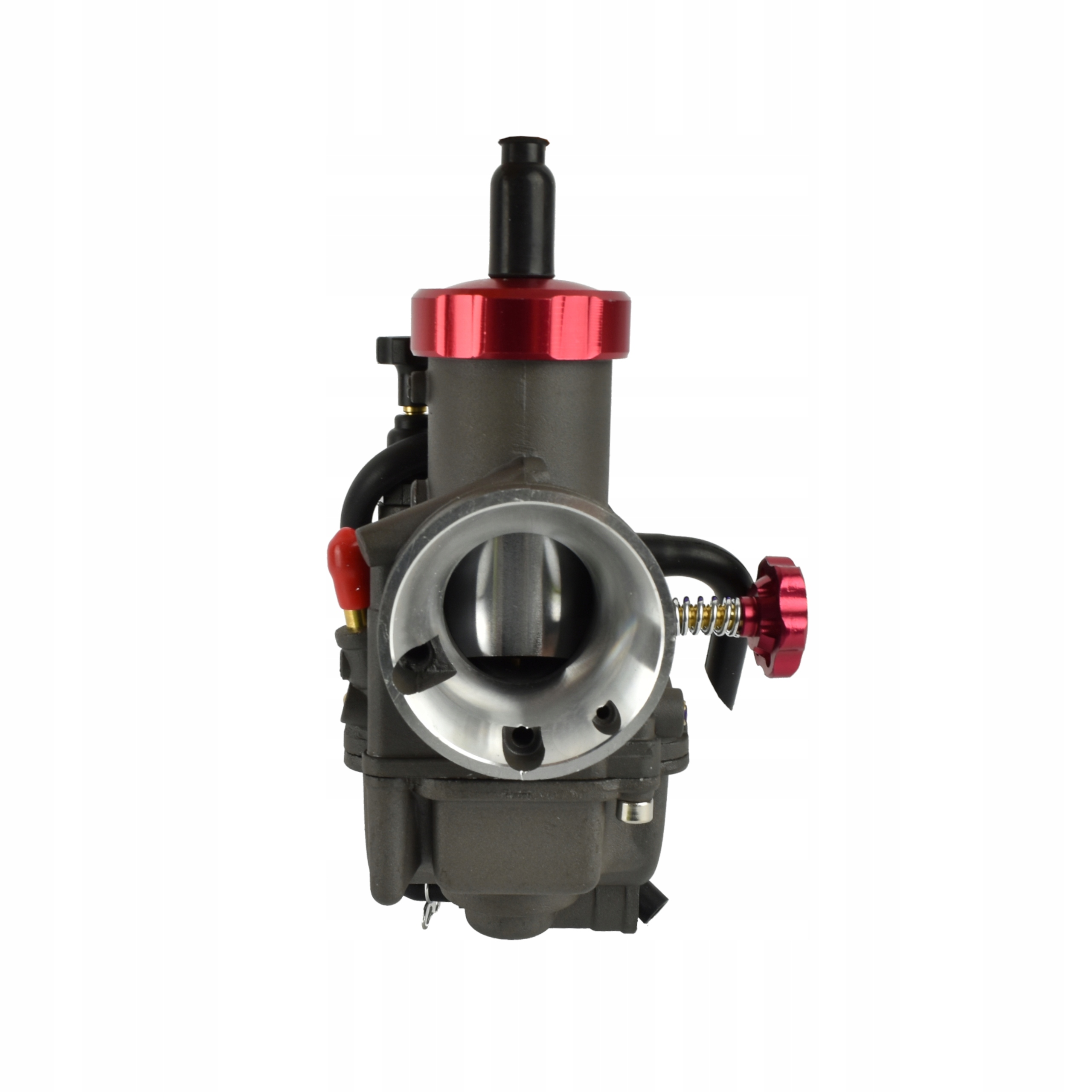 круглый хромированный дроссель, вакуумный впуск справа.