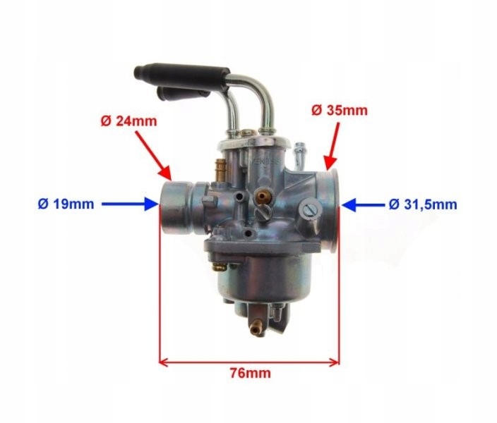 - крепление карбюратора: гибкий патрубок 24 мм,