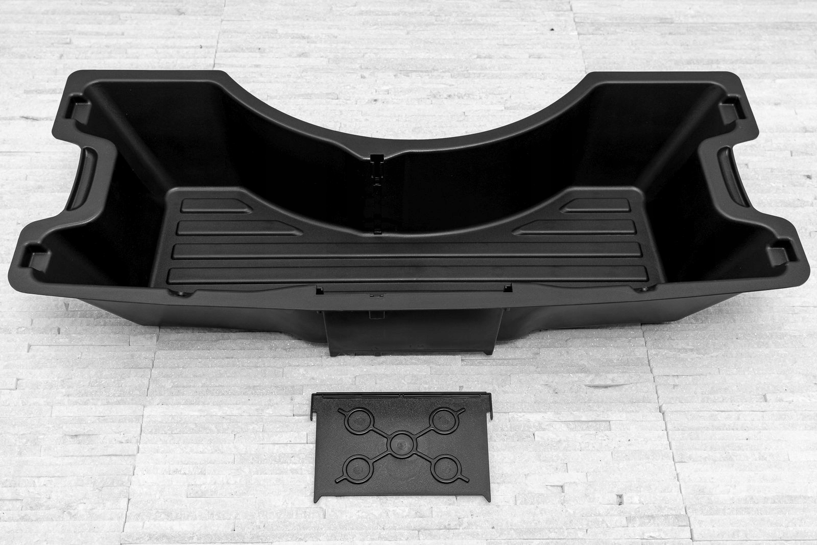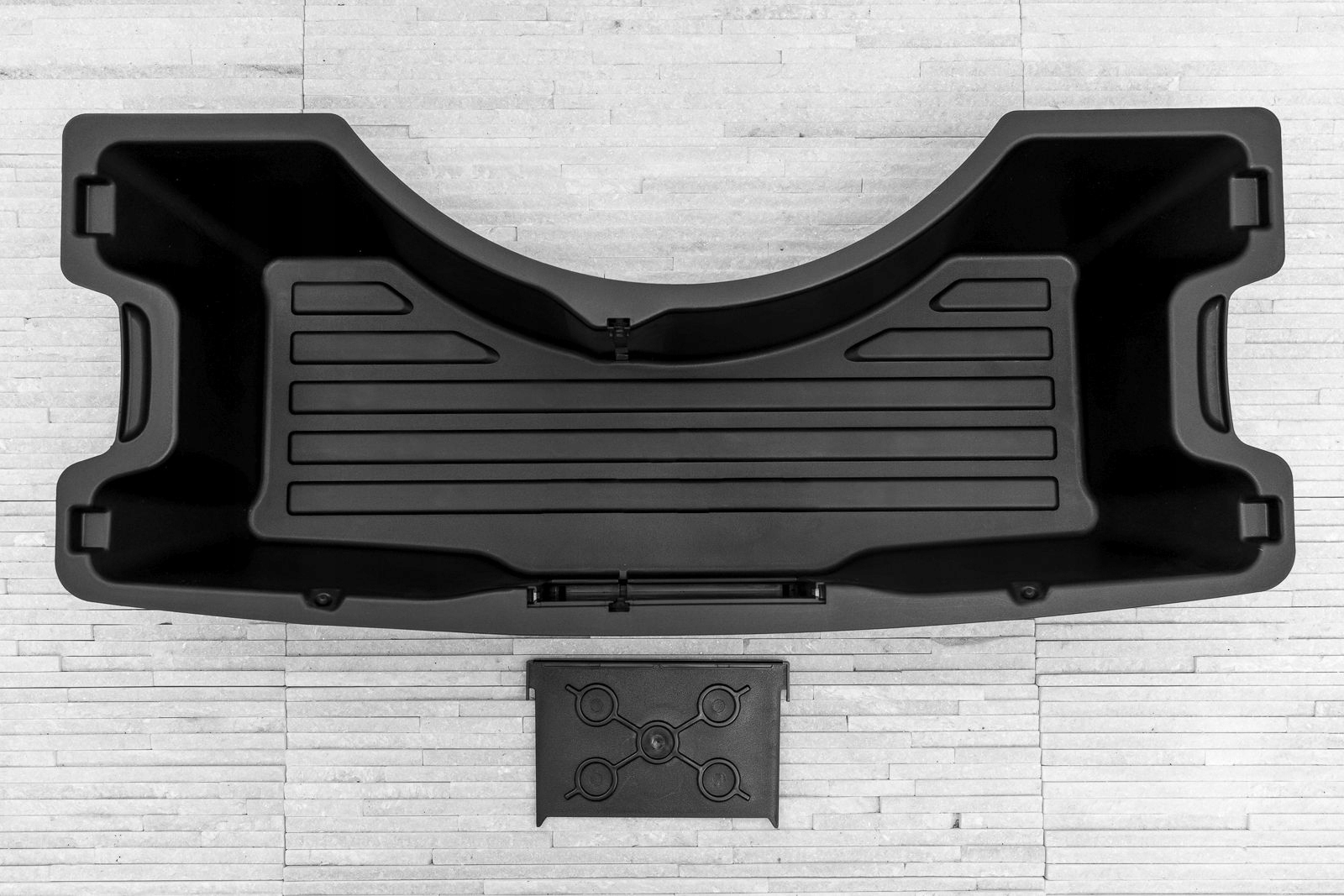 Прессованный пластиковый картридж позволяет превратить отсек запасного колеса в практичный органайзер. Картридж позволяет удобно хранить необходимые инструменты и аксессуары. Основное отделение можно разделить на две меньшие части с помощью прилагаемого отсека.п>