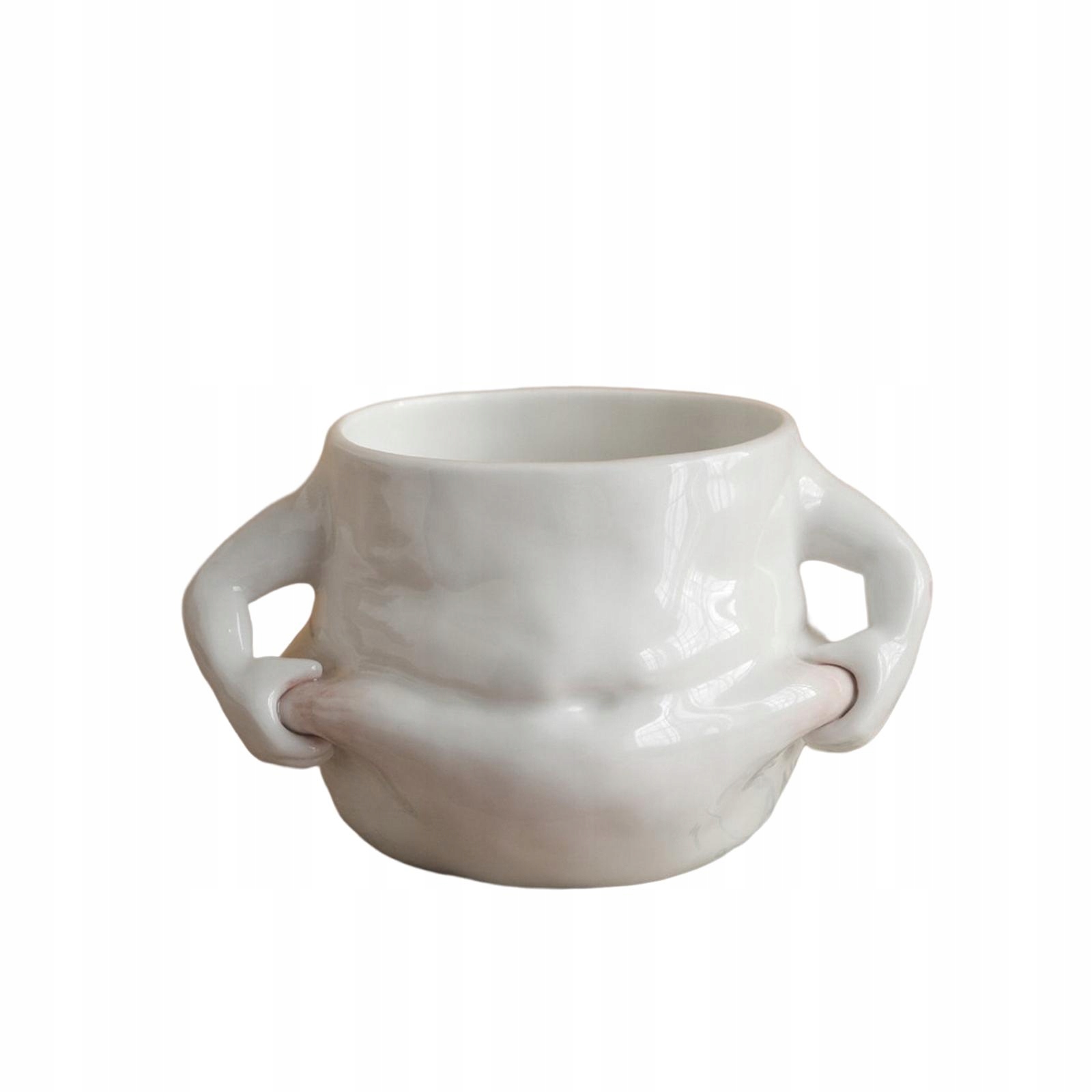 Дизайн: забавная, креативная чашка для воды с большим дном и двумя ручками в форме рук. Его удобно держать и очень приятно.
