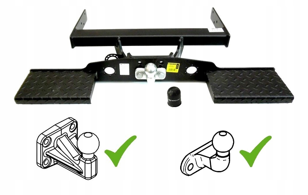 двойной порог Steinhof может быть установлен на любой автомобиль с буксировочным крюком и фланцевым шаром, установленным на 2 Средиземья с расстоянием между отверстиями 90 мм, и крюками с фланцевым шаром, установленным на 4 отверстия с расстоянием между 83 x 56 мм.