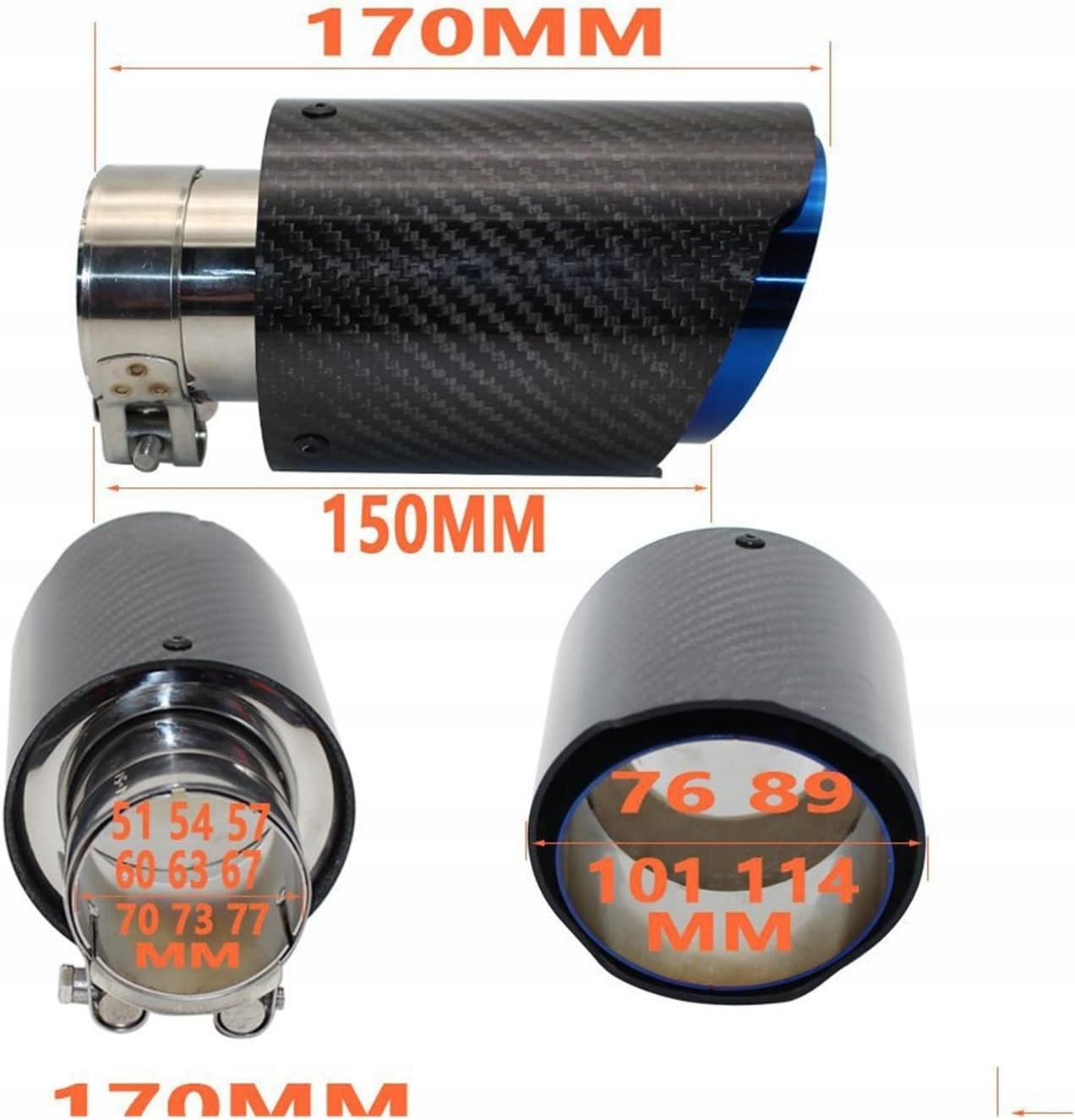 Наконечник глушителя выхлопной системы автомобиля из матового углеродного волокна. Прямые универсальные глушители из нержавеющей стали серебристого цвета.