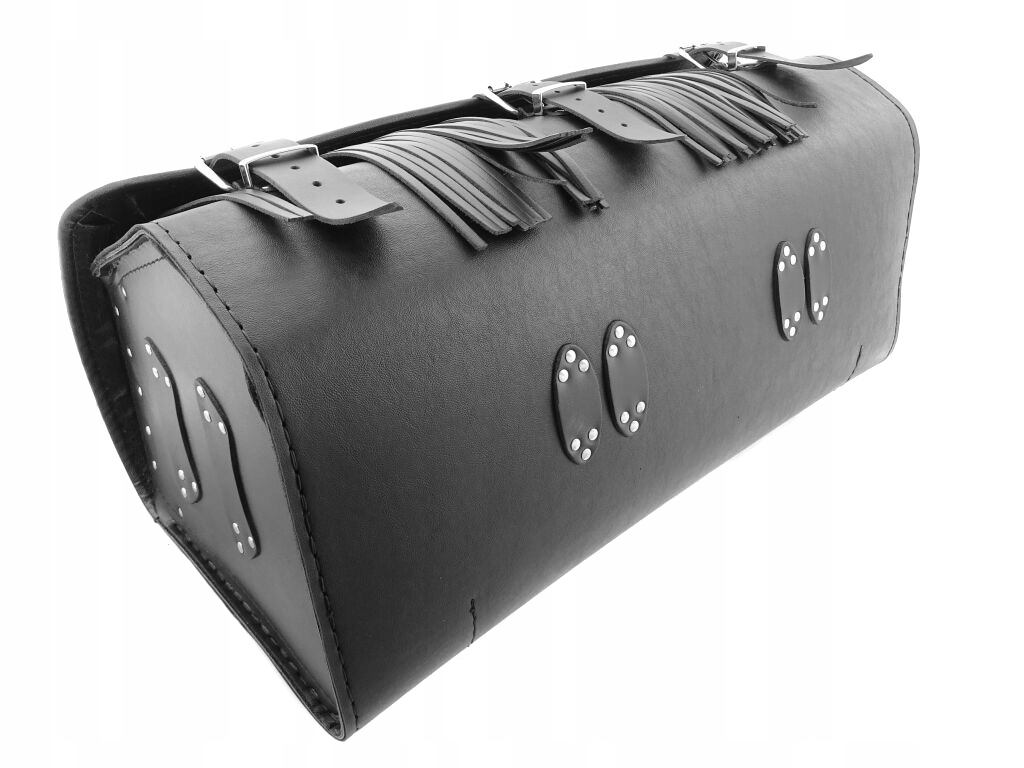 украшен хромированными заклепками и бахромой.п>