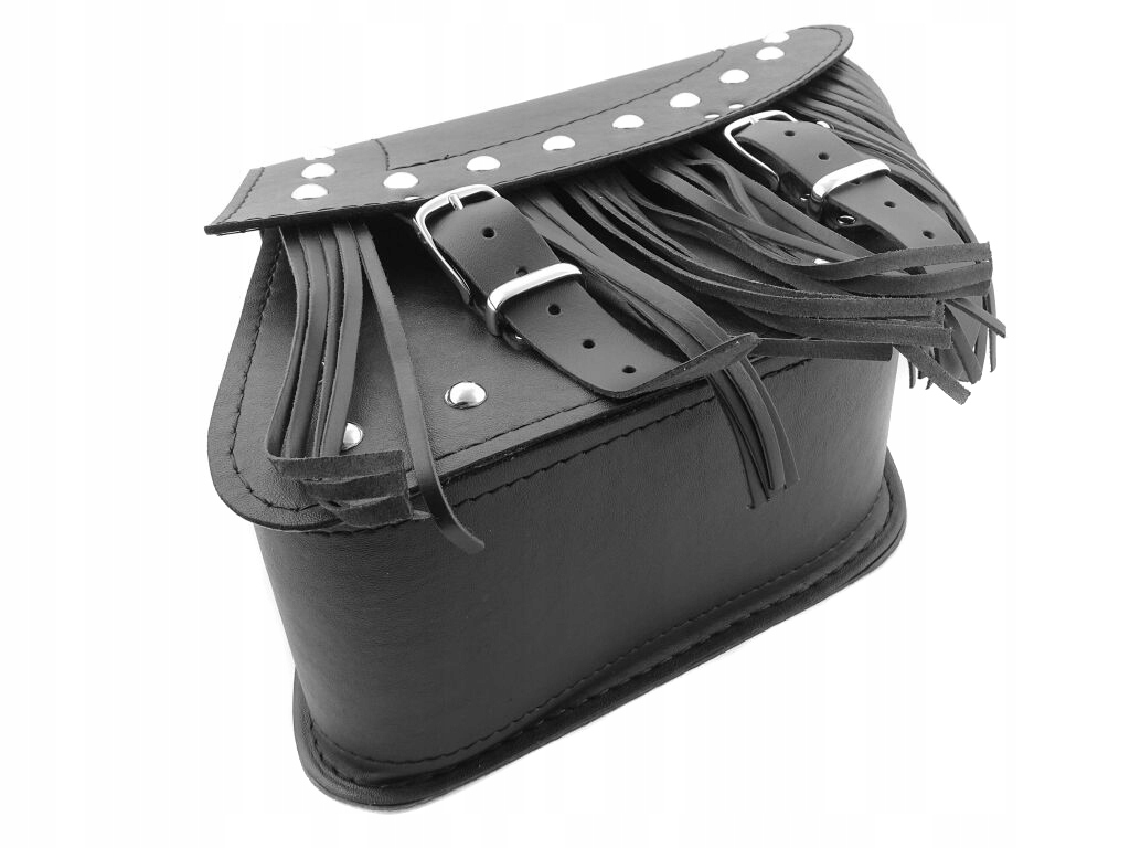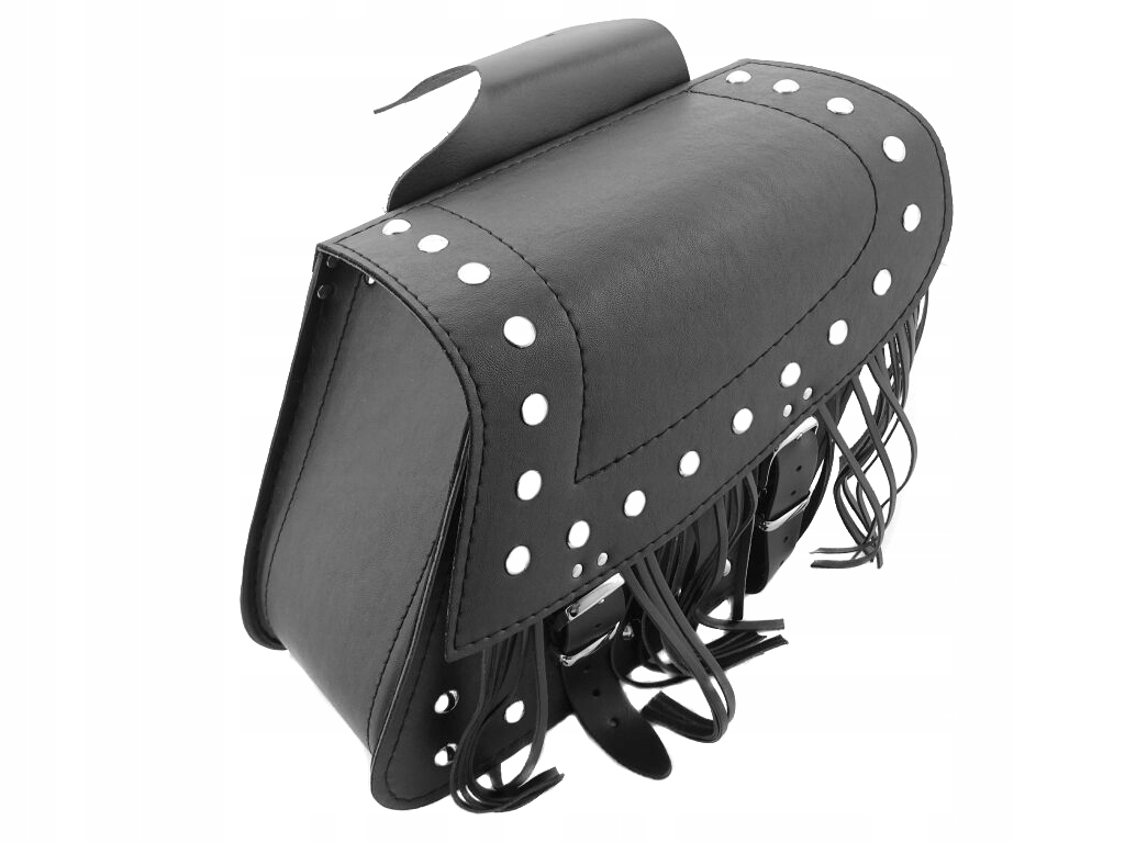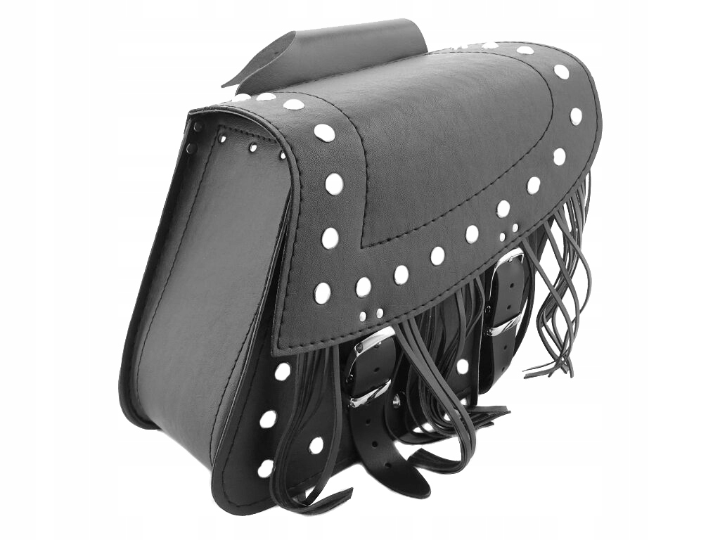 украшены хромированными заклепками и бахромой.п>