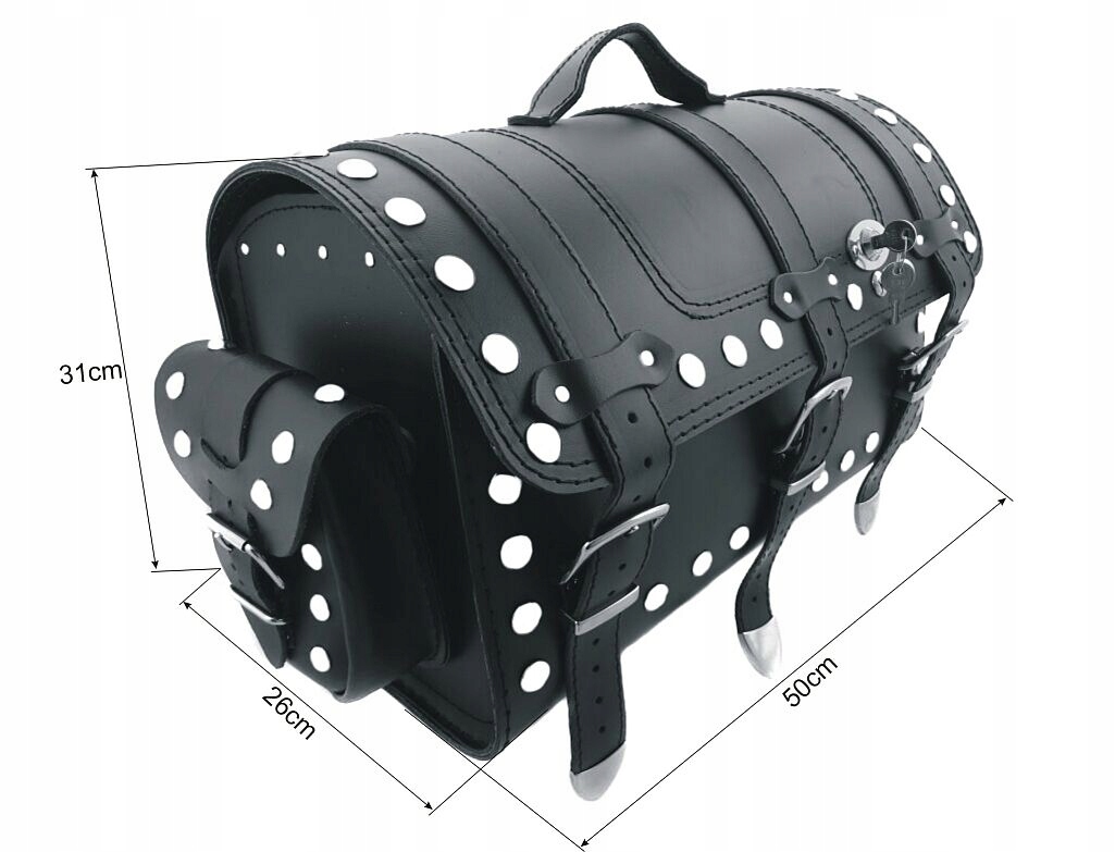 украшен хромированными заклепками.п>