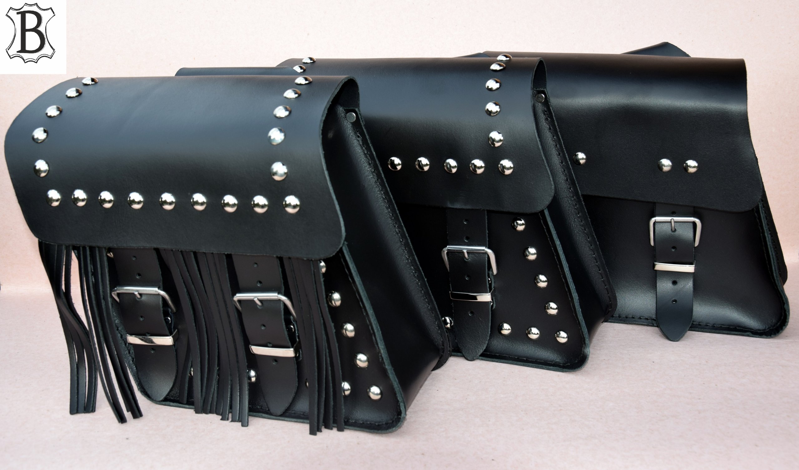 - цена указана за комплект седельных сумок: левая и правая, с заклепками (B), заклепки + кисточки (C)