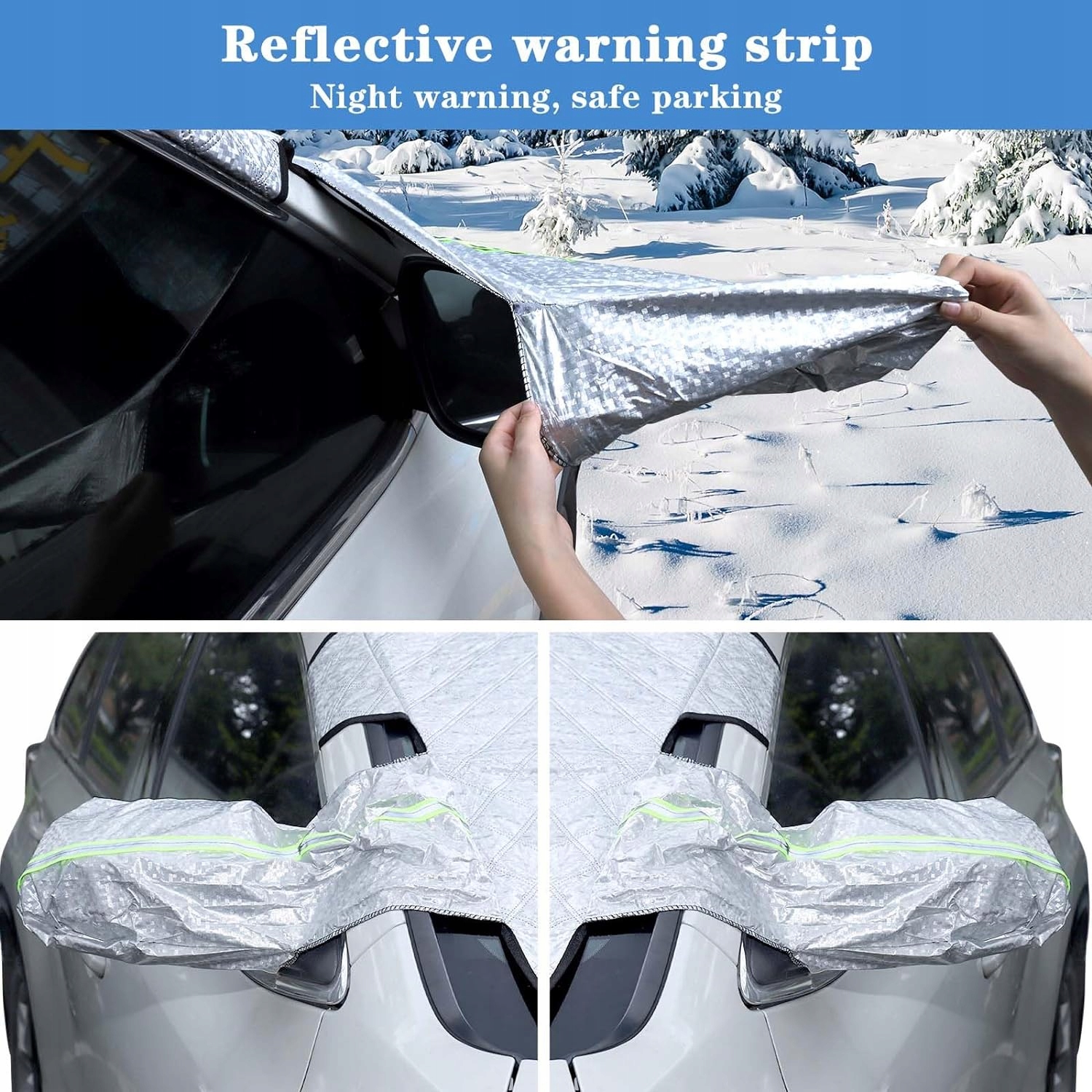 Высококачественный материал. Незамерзающий автомобильный козырек состоит из 4 слоев композитного материала из алюминиевой фольги. PE иглопробивной хлопковый черный нетканый материал, очищенный и утолщенный, с высококачественным огнестойким хлопком внутри, который имеет хорошую защиту от солнца. устойчивость к разрыву и ветру, прочный, подходит для стирки. Простая установка, инструменты не требуются. Зимний чехол на лобовое стекло с девятью сильными магнитами, которые можно надежно прикрепить к лобовому стеклу вашего автомобиля. Противоугонная конструкция защелкивает боковые крылья непосредственно в двери. Защита от кражи и падения с серебряной стороны. вверх Все сезоны Автомобильные чехлы на лобовое стекло подходят для всех сезонов: весна, лето, осень. Его можно использовать в качестве защиты от солнца и пыли, он блокирует почти 99 ультрафиолетовых лучей, а также от пыли, сломанных ветвей, падающих листьев и птичьего помета. Предотвратите повреждение лобового стекла снегом, льдом и морозом зимой. Безопасная конструкция. Солнцезащитный козырек автомобиля оснащен двумя светоотражающими полосами на крышке зеркала, которые хорошо видны ночью или в снежную погоду, обеспечивая безопасность вождения и парковку в ночное время. Широкое применение. Козырек лобового стекла подходит для небольших внедорожников, минивэнов и т. д. Размер 141–114 см отвечает вашим потребностям в различных типах транспортных средств и надежно защищает ваш автомобиль