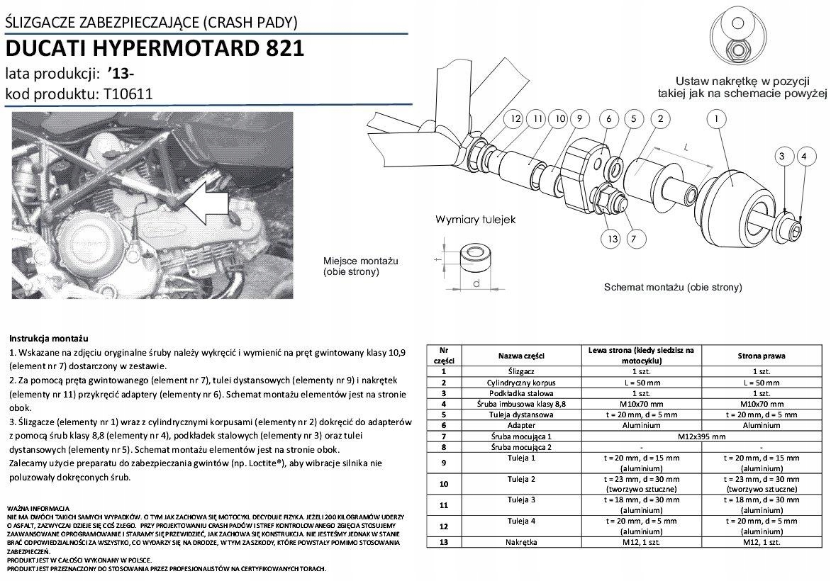 CRASH колодки RENNER Ducati HYPERMOTARD 821 939 1100
