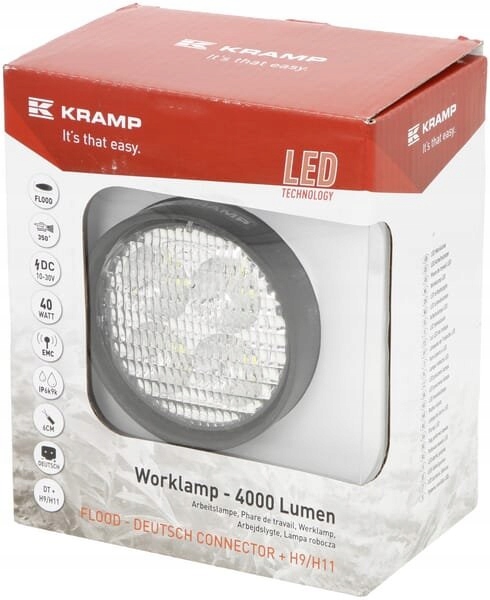 светодиодный рабочий светильник, круглый 40W 4000lm 10 / 30V с вилкой AMP 4 LED 360° Kramp
