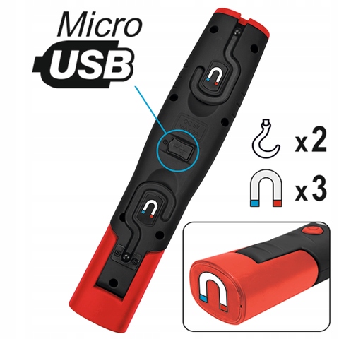 - вращающийся корпус позволяет наклонять лампу под любым углом. Благодаря этой функции и, кроме того, двум крючкам и трем магнитам, она легко и гибко фиксируется. Это дает возможность оптимально осветить желаемое пространство, оставляя руки свободными.