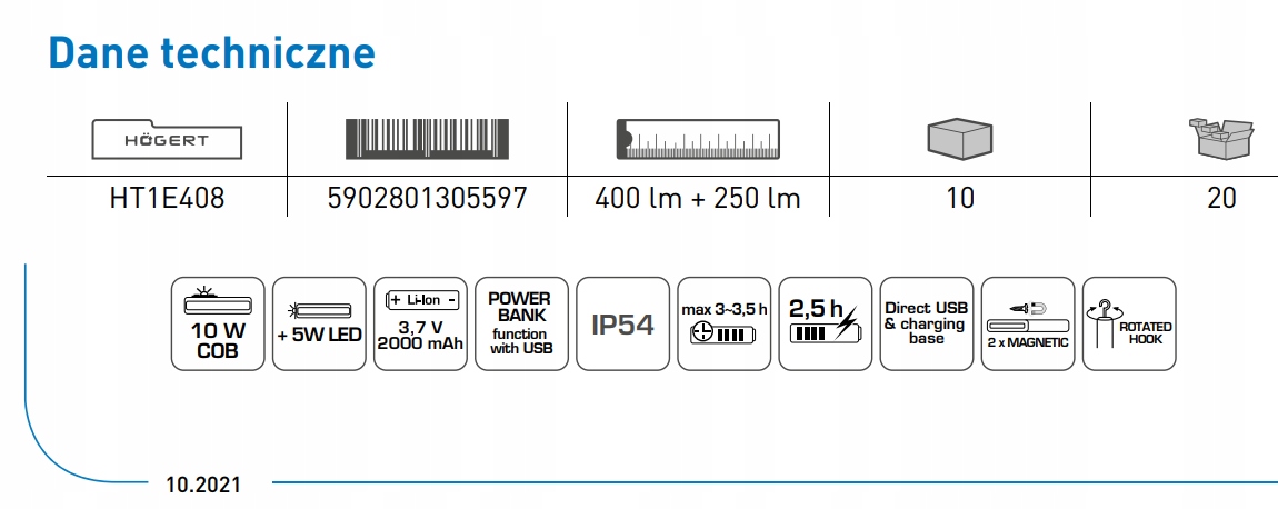 светодиодная лампа для мастерской с USB-базой HOGERT HT1E408