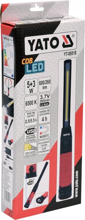 функциональная лампа для мастерской мощностью 5 Вт с расположенным сверху фонариком мощностью 3 Вт. световой поток 600 люмен и 3 режима освещения гарантируют эффективную и комфортную работу. Магнит на дне позволяет прикрепить лампу к металлическим элементам. Длинная, тонкая и регулируемая верхняя часть лампы облегчит просветление труднодоступных мест.п>