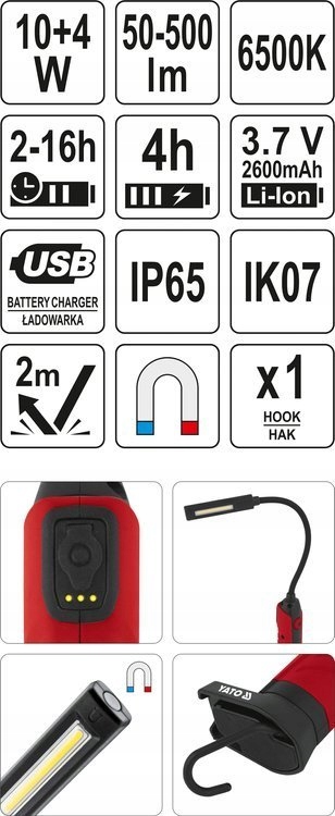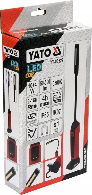 Yato лампа для мастерской гибкая двухсторонняя регулируемая Cob Led 50-500lm 2600mAh