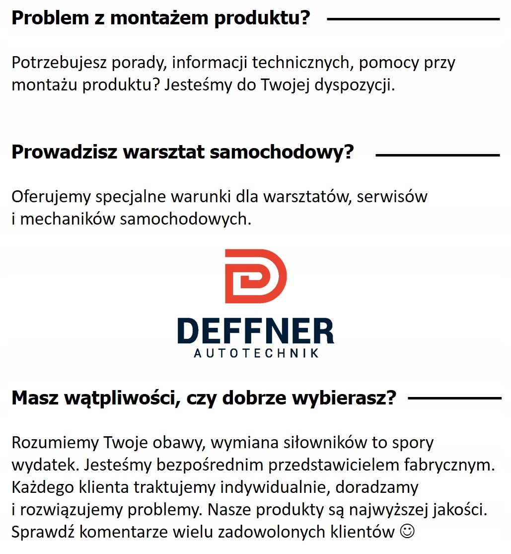после замены изношенного привода с номером OE LR058305, LR034398, LR050867, LR058305G, LR104907 (электрический привод левый и правый) на новый амортизатор крышки марки DEFFNER проблемы, связанные с слишком быстрым падением или резким неконтролируемым падением заслонки, должны исчезнуть.