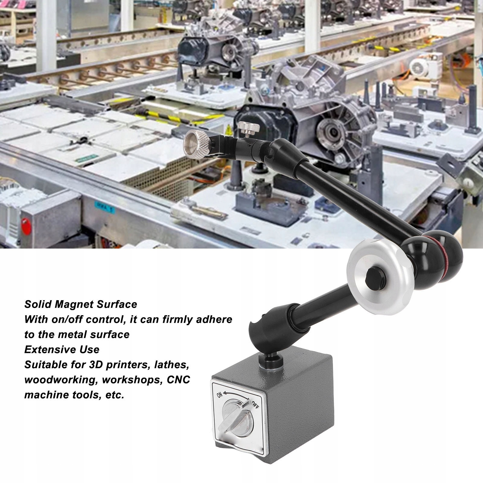 1. [Поворотный шарнир] направление и положение поворотного шарнира можно регулировать по желанию. Это основание циферблатного датчика является гибким, прочным и стабильным. Используется для обычных цифровых или часовых индикаторов.