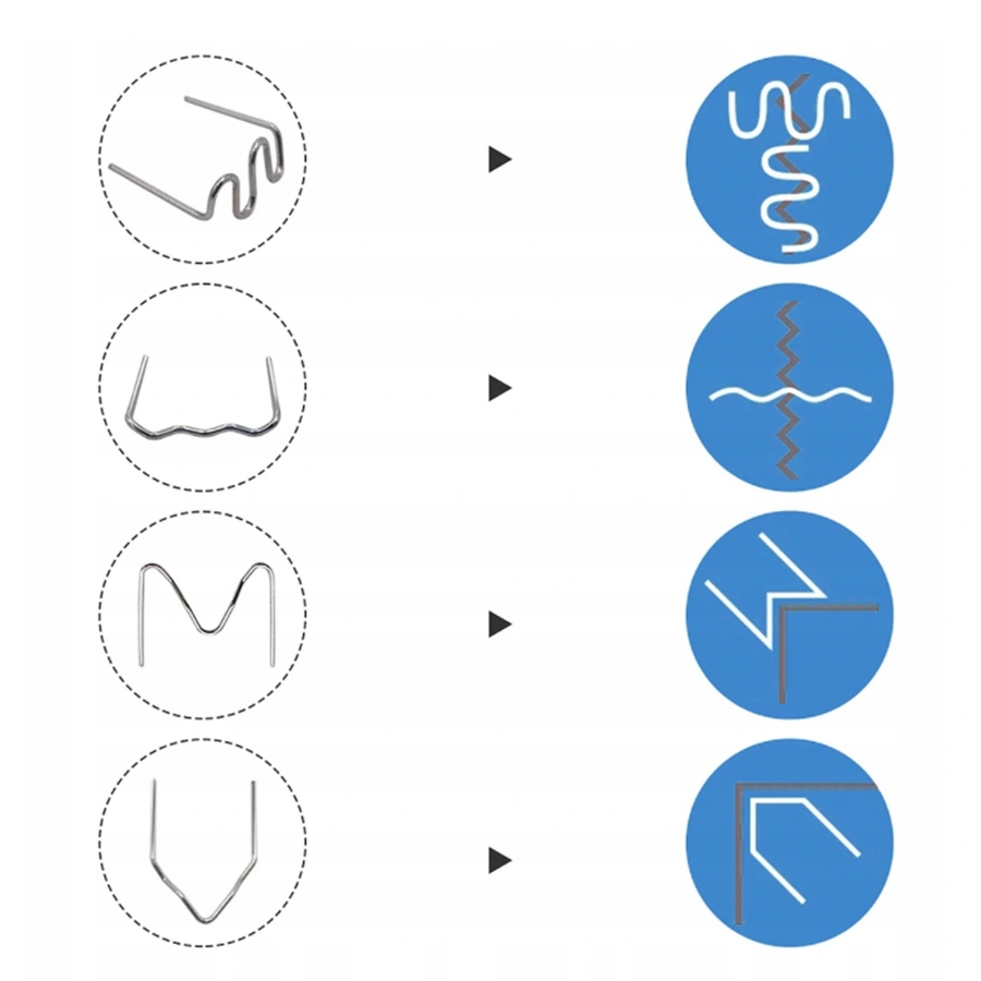В комплекте 200 скоб, с помощью которых устройство будет прочно соединять треснувшие пластиковые элементы, а место соединения будет устойчиво к ударам и скручиванию.