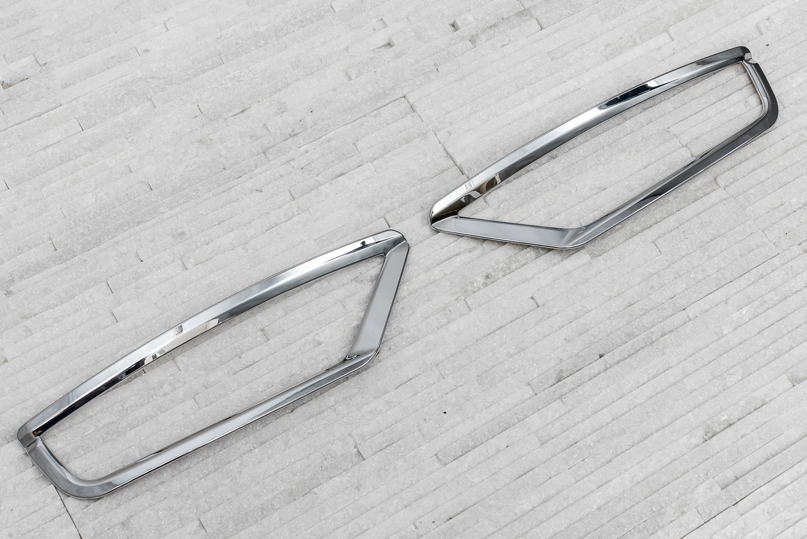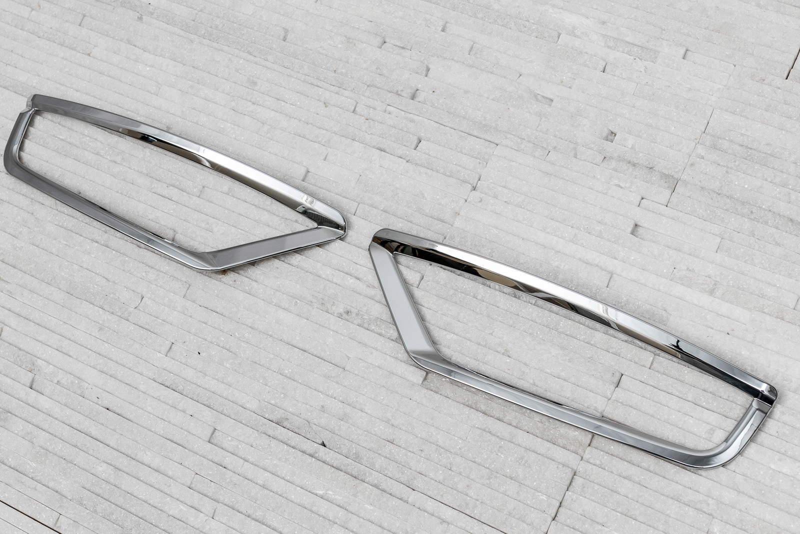 комплект включает в себя комплект из двух планок для галогенов. Изделие изготовлено из высококачественного хромированного АБС-пластика. Они монтируются с помощью скотча 3M с двухсторонней клейкой лентой, нанесенной на внутреннюю часть элементов. Мы рекомендуем профессиональную сборку.