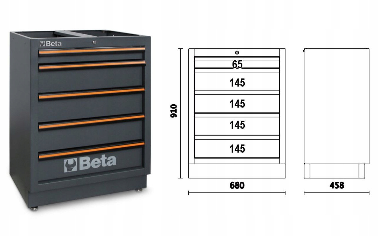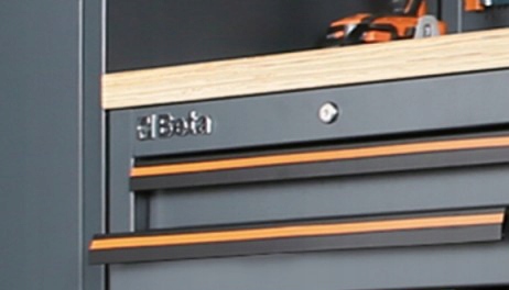 новый матовый серый цвет, ручки с оранжевым профилем, хромированный бета-логотип делают новую мебель для мастерской еще более увлекательной.