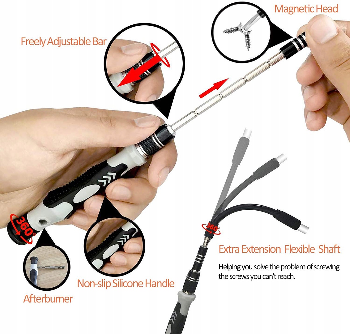 регулируемый и дополнительный гибкий удлинитель для битов облегчит замену деталей в труднодоступных местах.п>