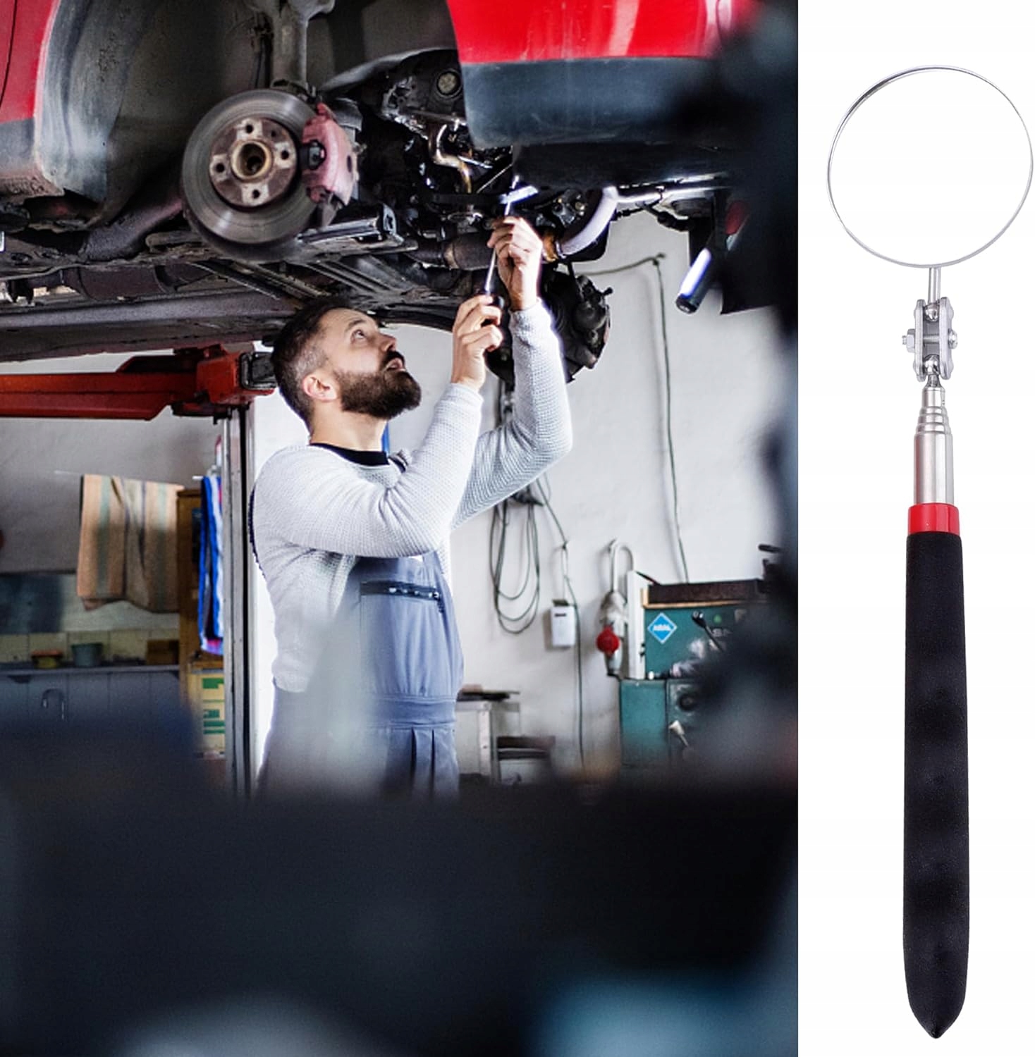 Механическое зеркало, регулируемые смотровые зеркала, смотровое зеркало, вращающееся смотровое зеркало, телескопическое на 360 градусов, длина до 73 см, черная противоскользящая ручка для автоматического ремонта, черный