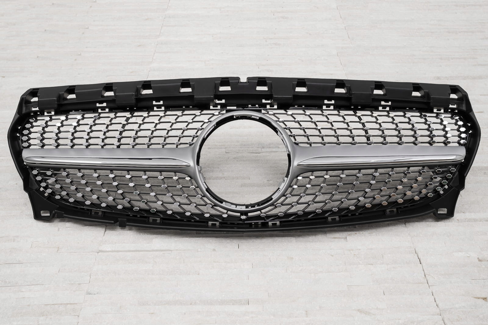 передняя решетка ,модель DIAMOND SILVER предназначена для MERCEDES CLA (C117 / X117) 2016-2018 с фейслифтингом (для версии без заводской камеры). Предлагаемый гриль не подходит для версии AMG.