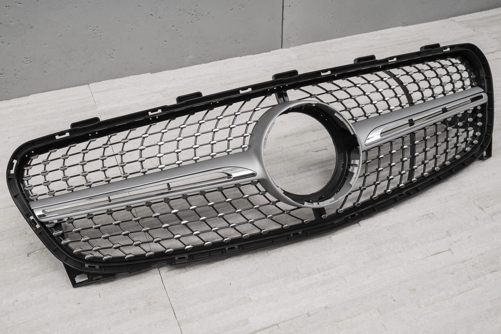 передняя решетка ,модель DIAMOND SILVER предназначен для MERCEDES GLA (X156) 2017-2020 с фейслифтингом (для версии без заводской камеры)