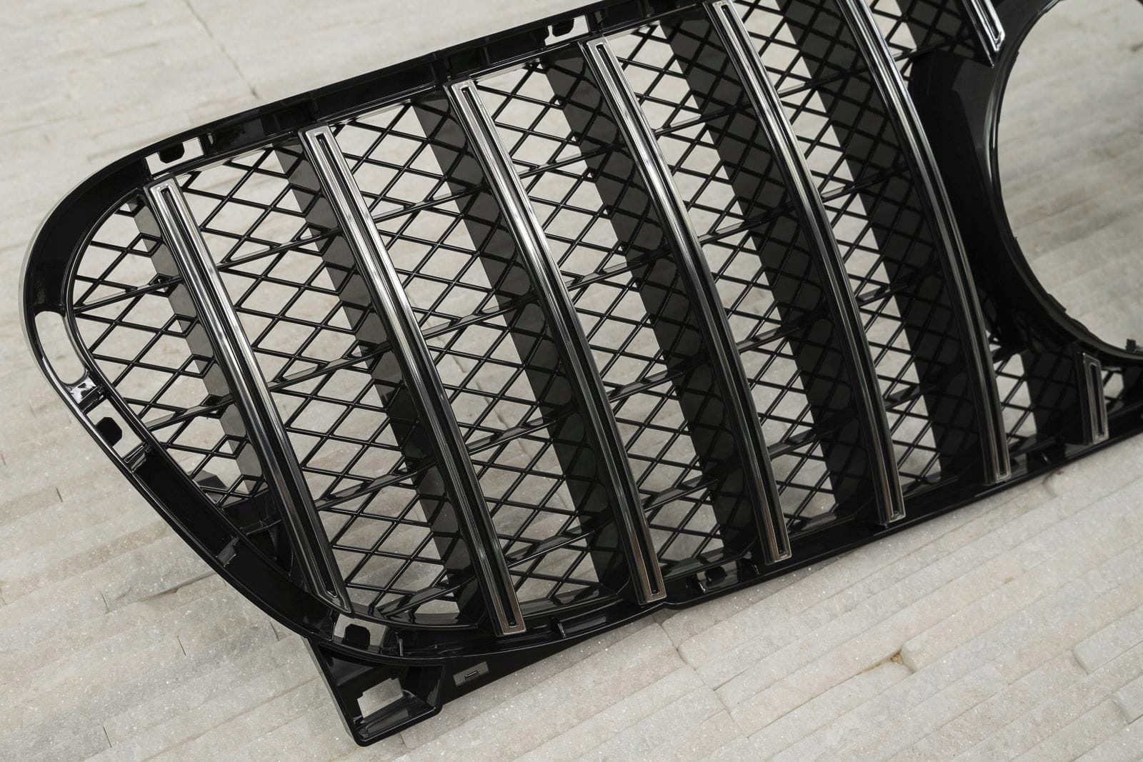 Специальная решетка радиатора выполнена в стиле, типичном для автомобилей сегмента GT. Решетка радиатора украшена широкими хромированными поперечинами, которые неизбежно напоминают респектабельные, мощные автомобили топ-класса. Элемент впечатляет своим спортивным характером, а блеск хромированных элементов добавляет элегантности, благодаря чему он идеально вписывается в впечатляющий дизайн Mercedes.