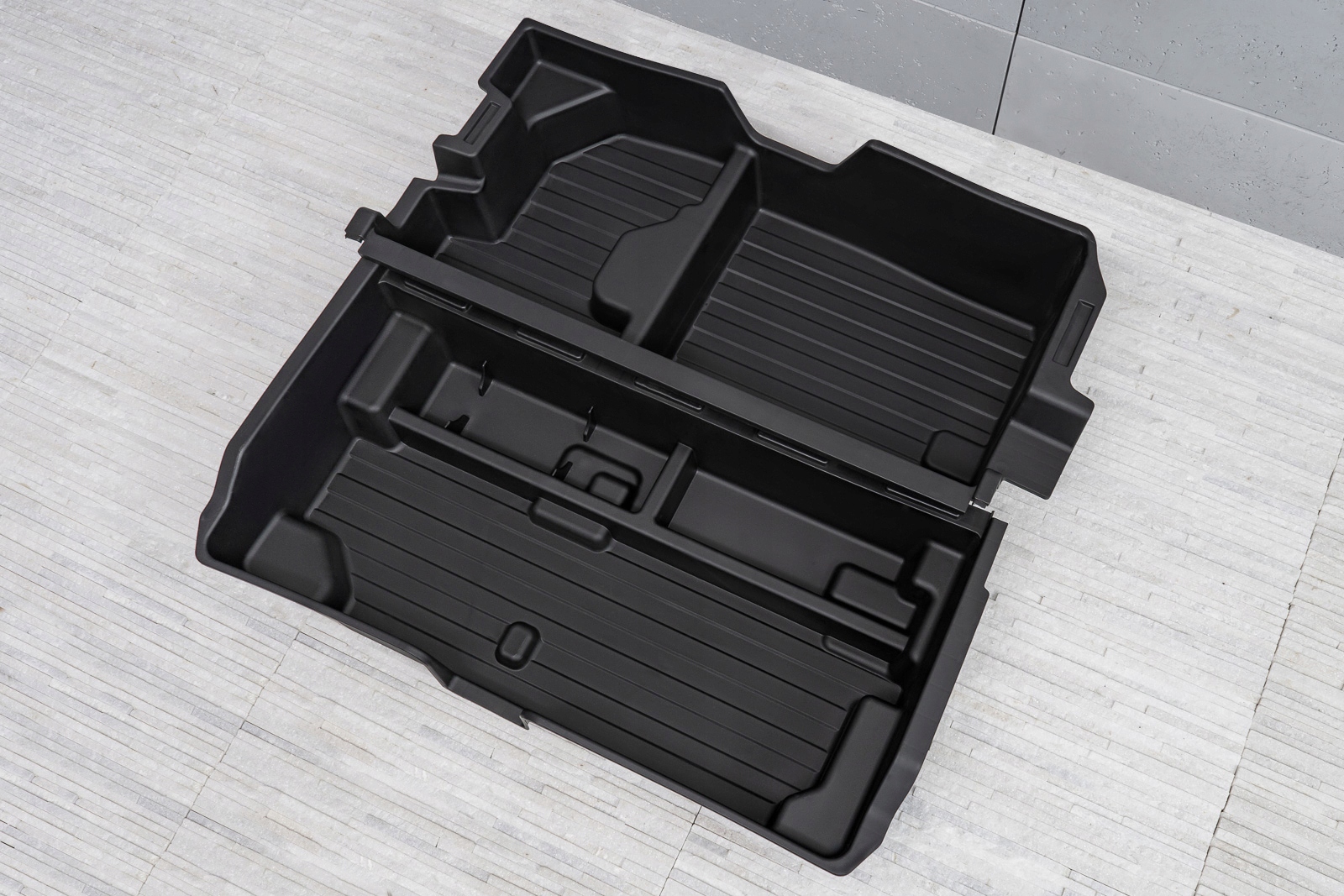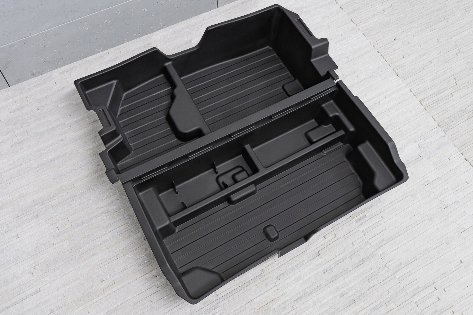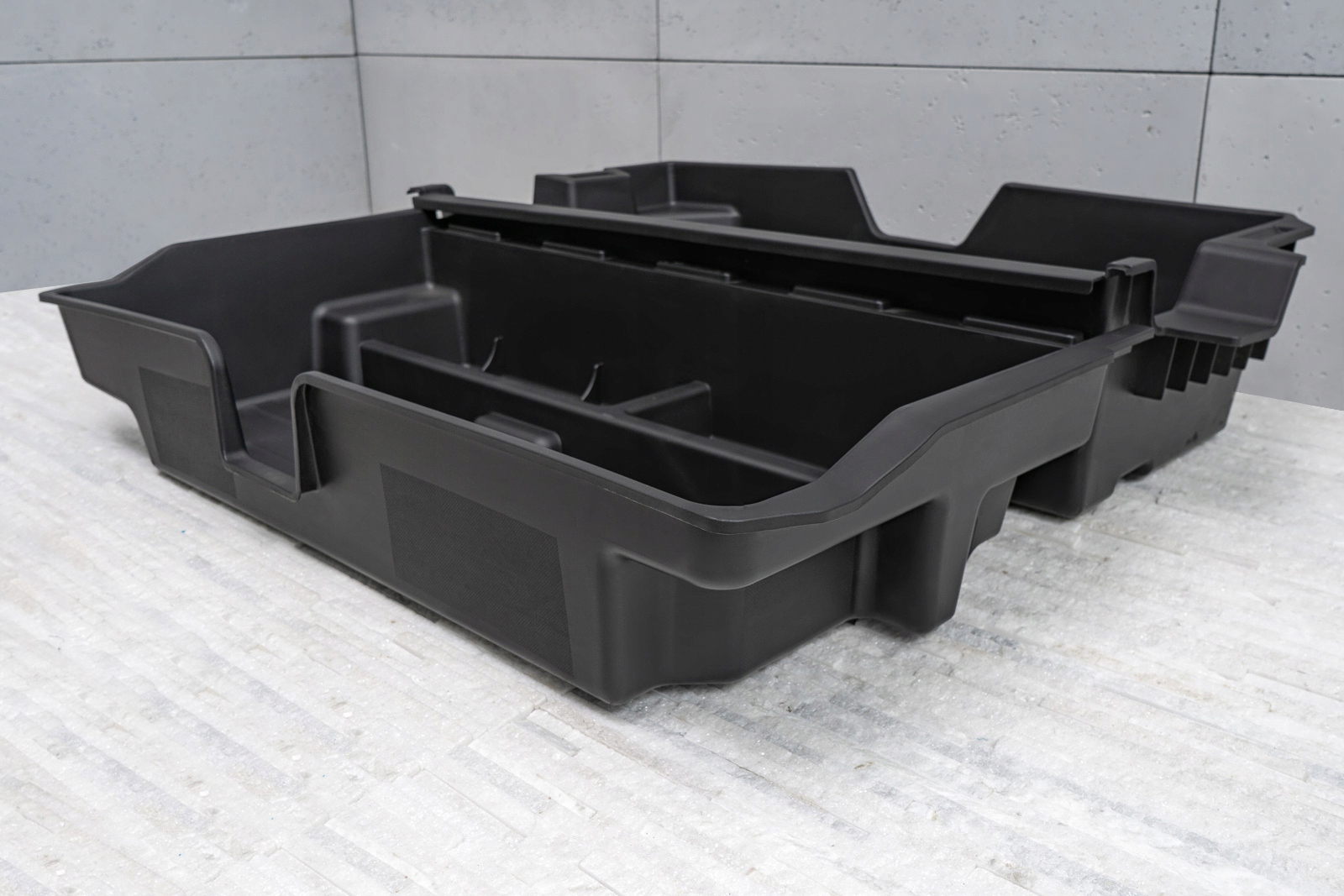 Прессованный пластиковый картридж позволяет превратить отсек запасного колеса в практичный органайзер. Картридж позволяет удобно хранить необходимые инструменты и аксессуары.п>