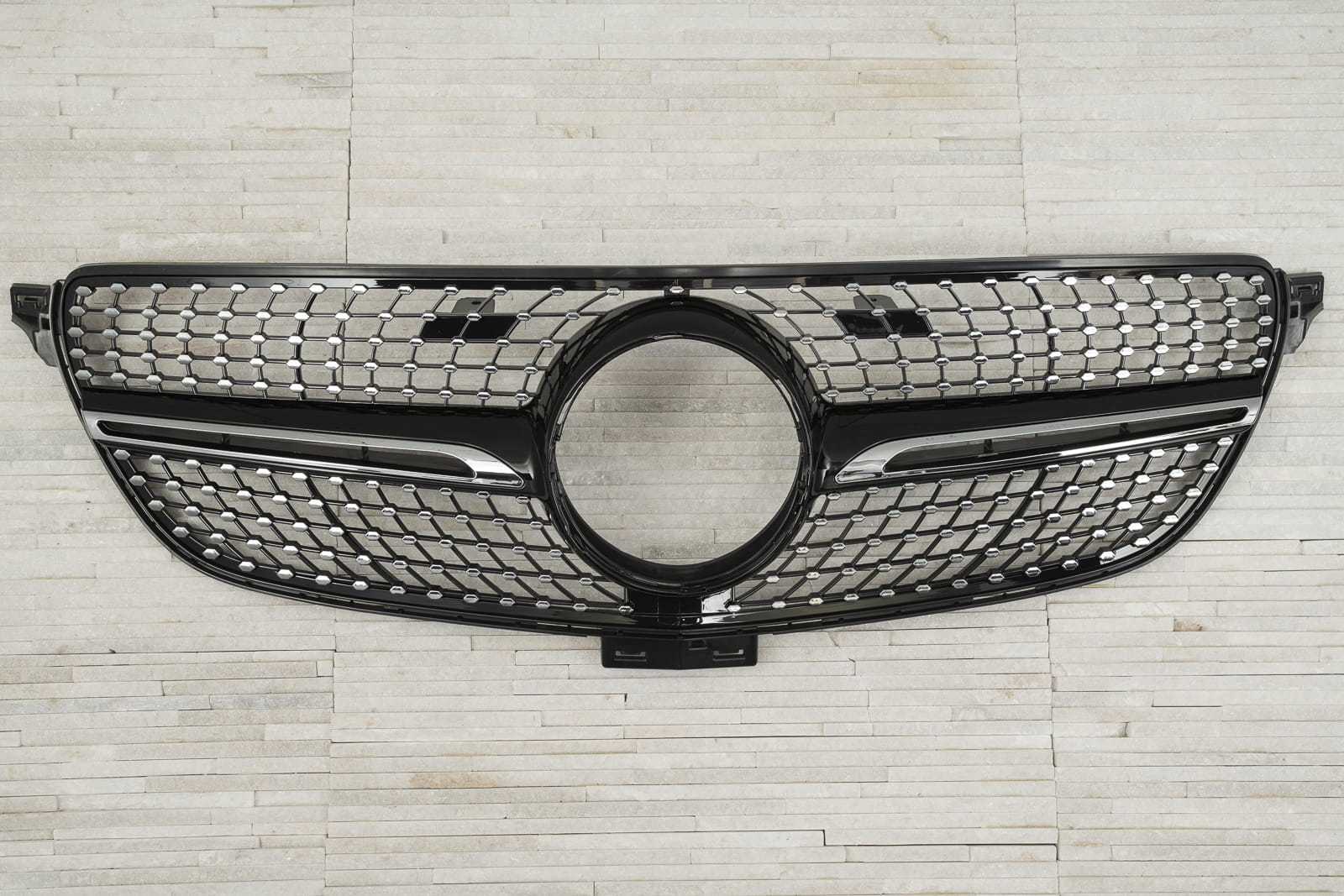 Специальный гриль идеально сочетается с изысканным дизайном модели GLE. Сетка гриля украшена серебряными штифтами, которые радиально расходятся по обеим сторонам элемента, придавая ему впечатляюще оригинальный стиль, характерный для самых роскошных моделей. Они заполняют пространство вокруг знака MERCEDES, окружая его элегантной рамкой. Решетка DIAMOND позволяет создать модный современный стиль вашего автомобиля, подчеркнув визуальные преимущества версии купе. Изделие изготовлено из высококачественного АБС-пластика черного цвета с хромированными элементами. Значок MERCEDES не входит в комплект. Гриль DIAMOND является запчастью, устанавливается взамен заводской решетки. Мы рекомендуем профессиональную установку. б>