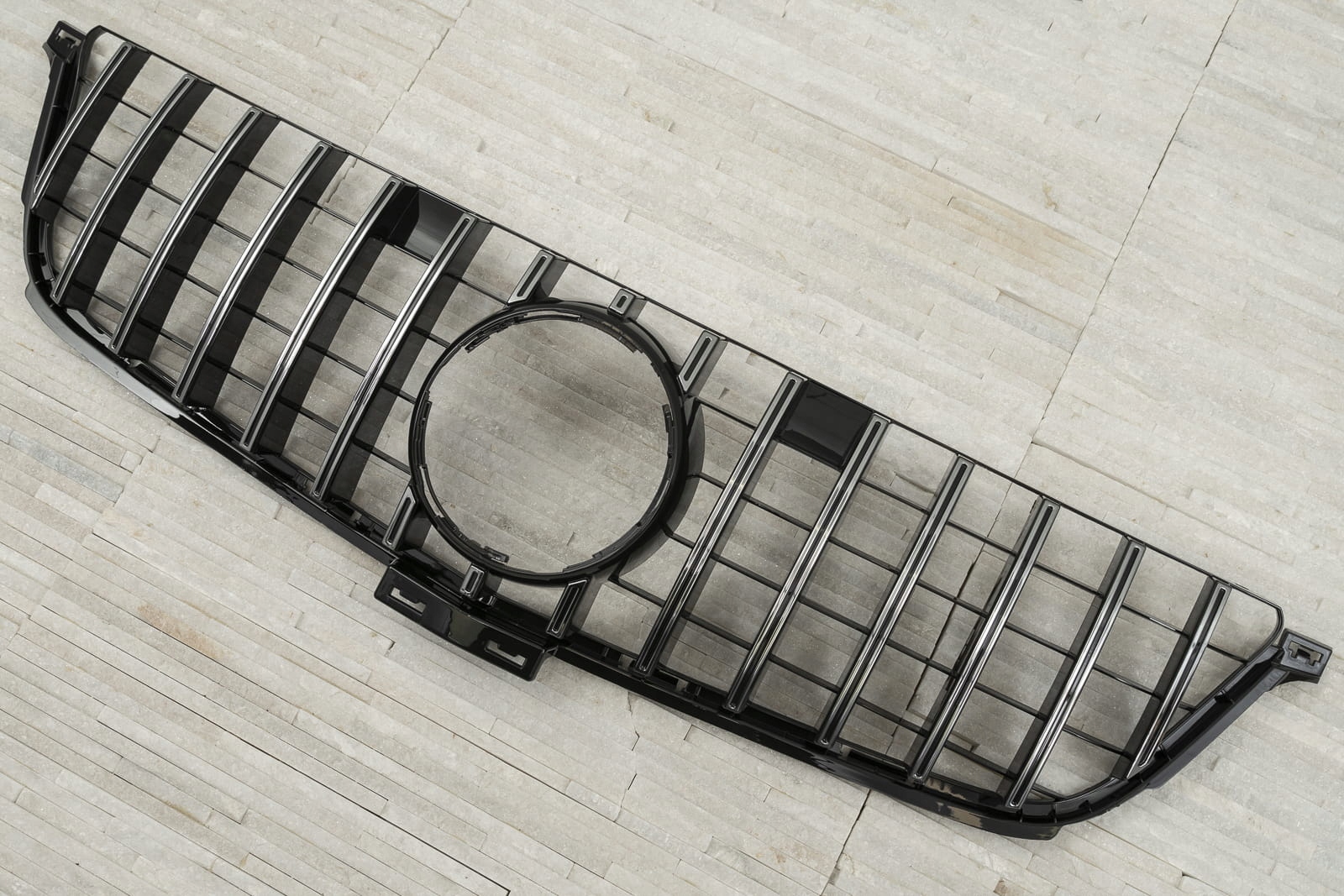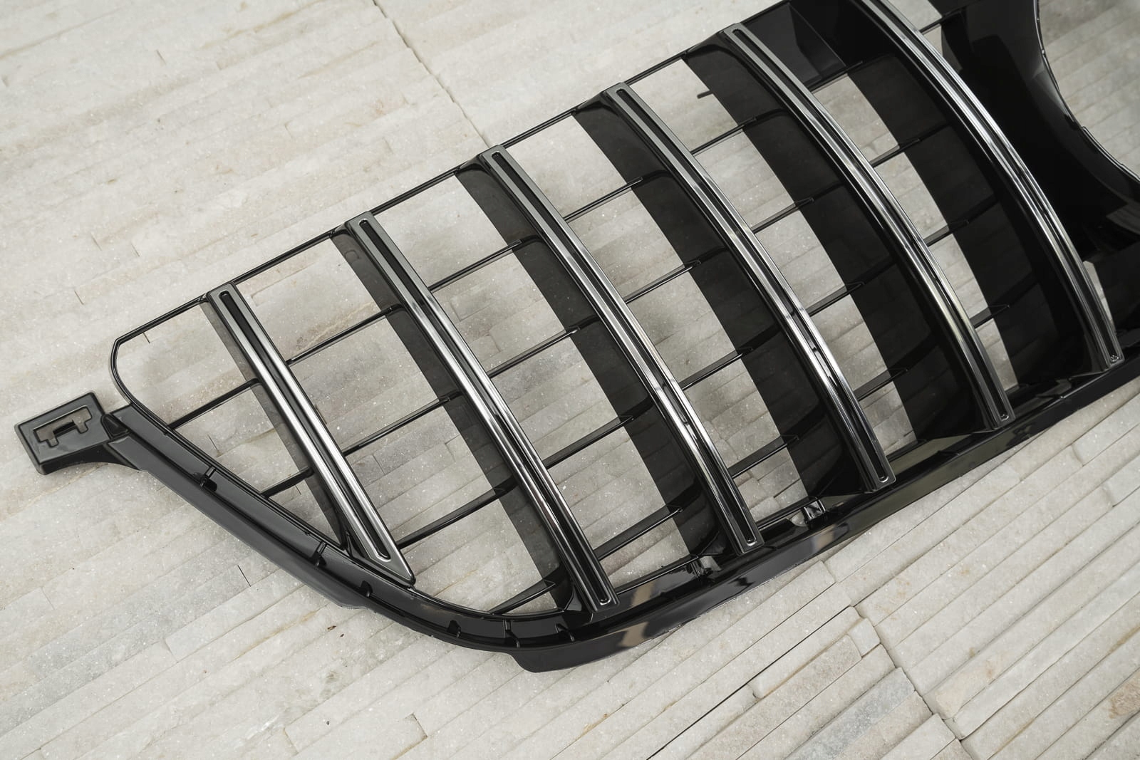 Специальная решетка радиатора выполнена в стиле, типичном для автомобилей сегмента GT. Решетка радиатора украшена широкими черными поперечинами, которые неизбежно напоминают респектабельные, мощные автомобили топ-класса. Элемент впечатляет своим спортивным характером, а блеск черных элементов добавляет элегантности, благодаря чему он идеально сочетается с впечатляющим дизайном Mercedes.