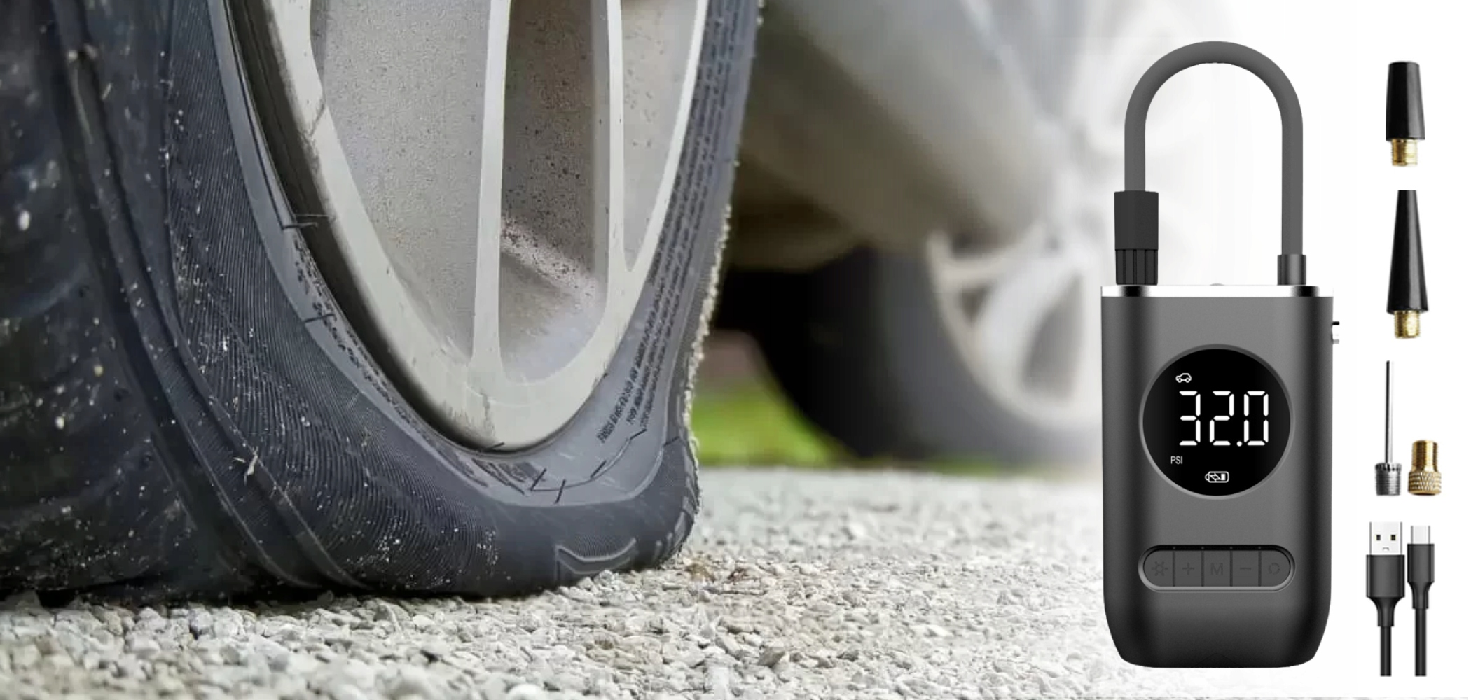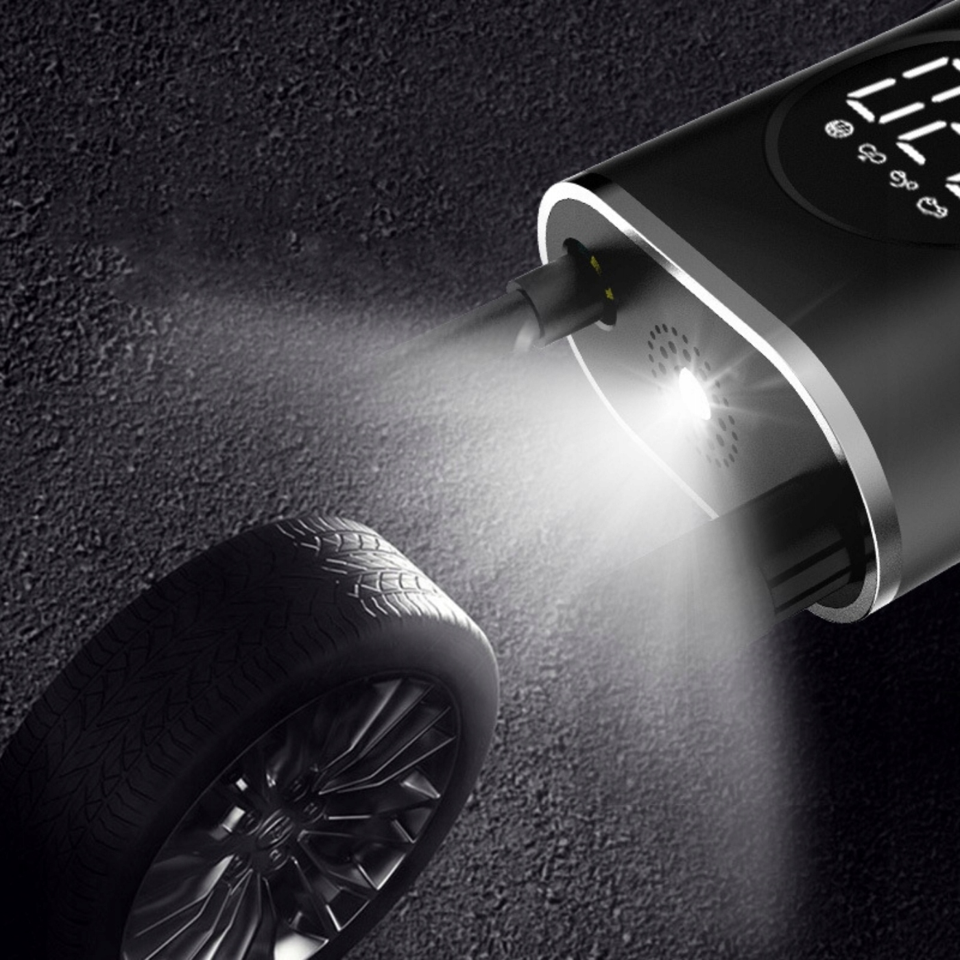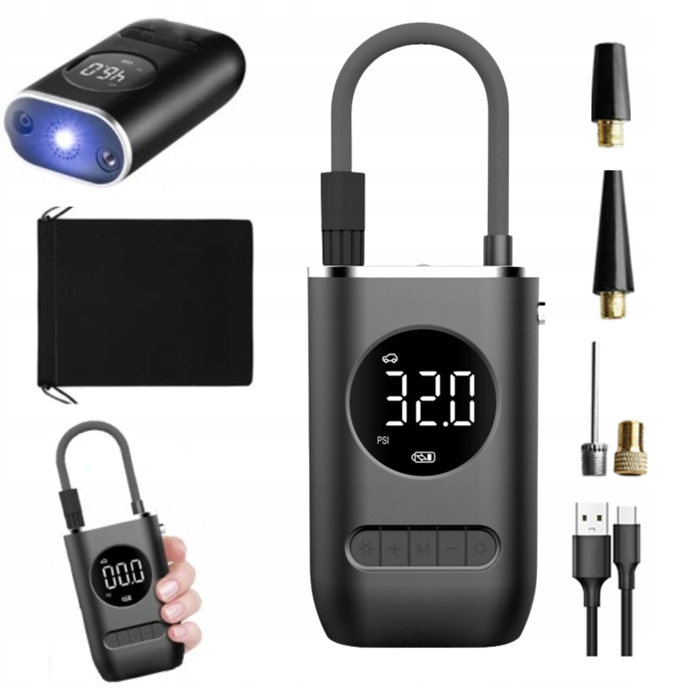 совместим с различными насадками, подходит для надувания различных предметов, таких как различные виды шин, включая автомобильные, мотоциклетные, велосипедные шины, а также шарики, плавательные кольца, надувные игрушки, надувные матрасы и многое другое!