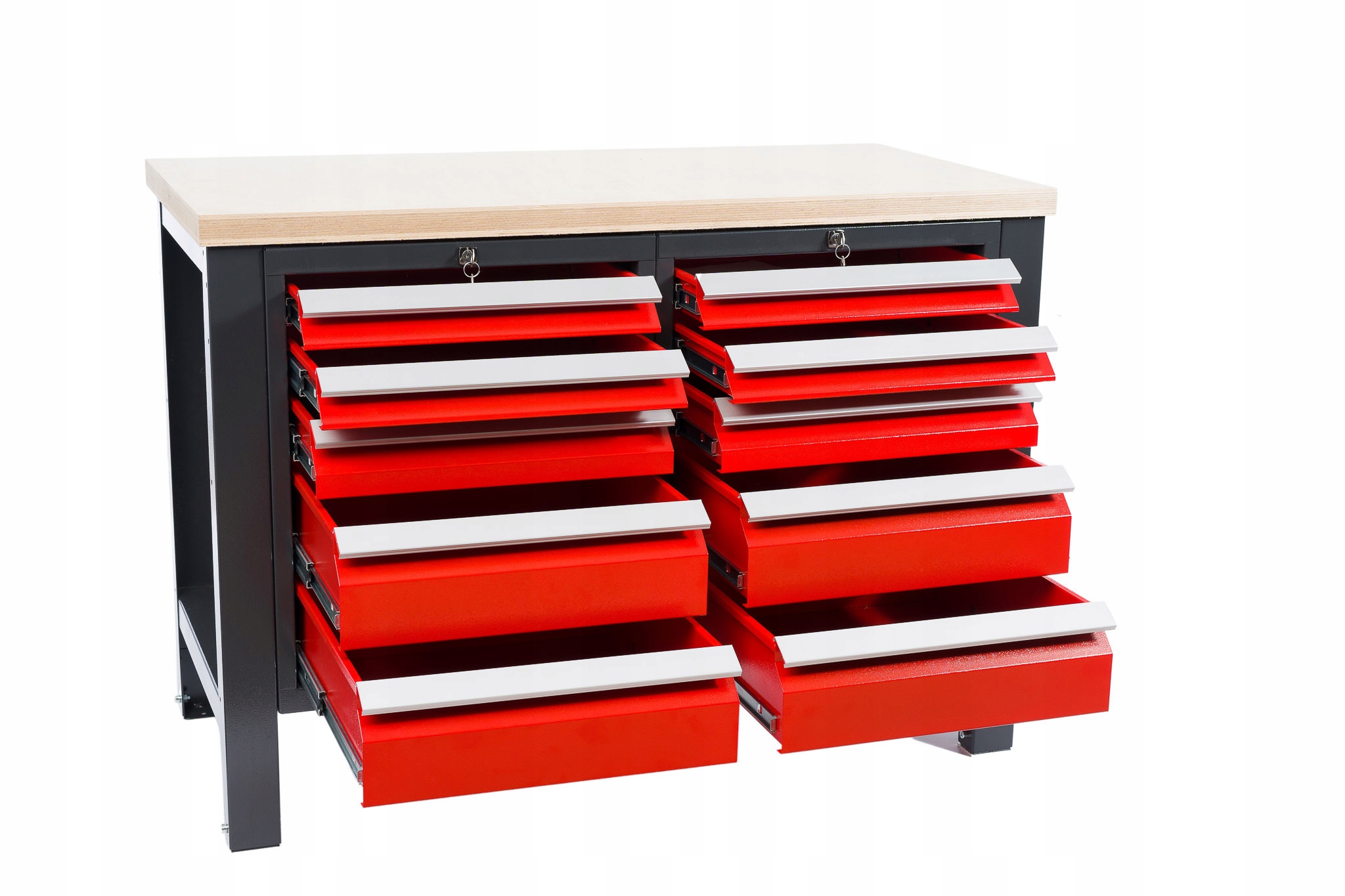 • цвет; корпус антрацит (фирменный цвет), фасады: красный-RAL 3020, ручки в алюминиевом цвете –RAL 9006