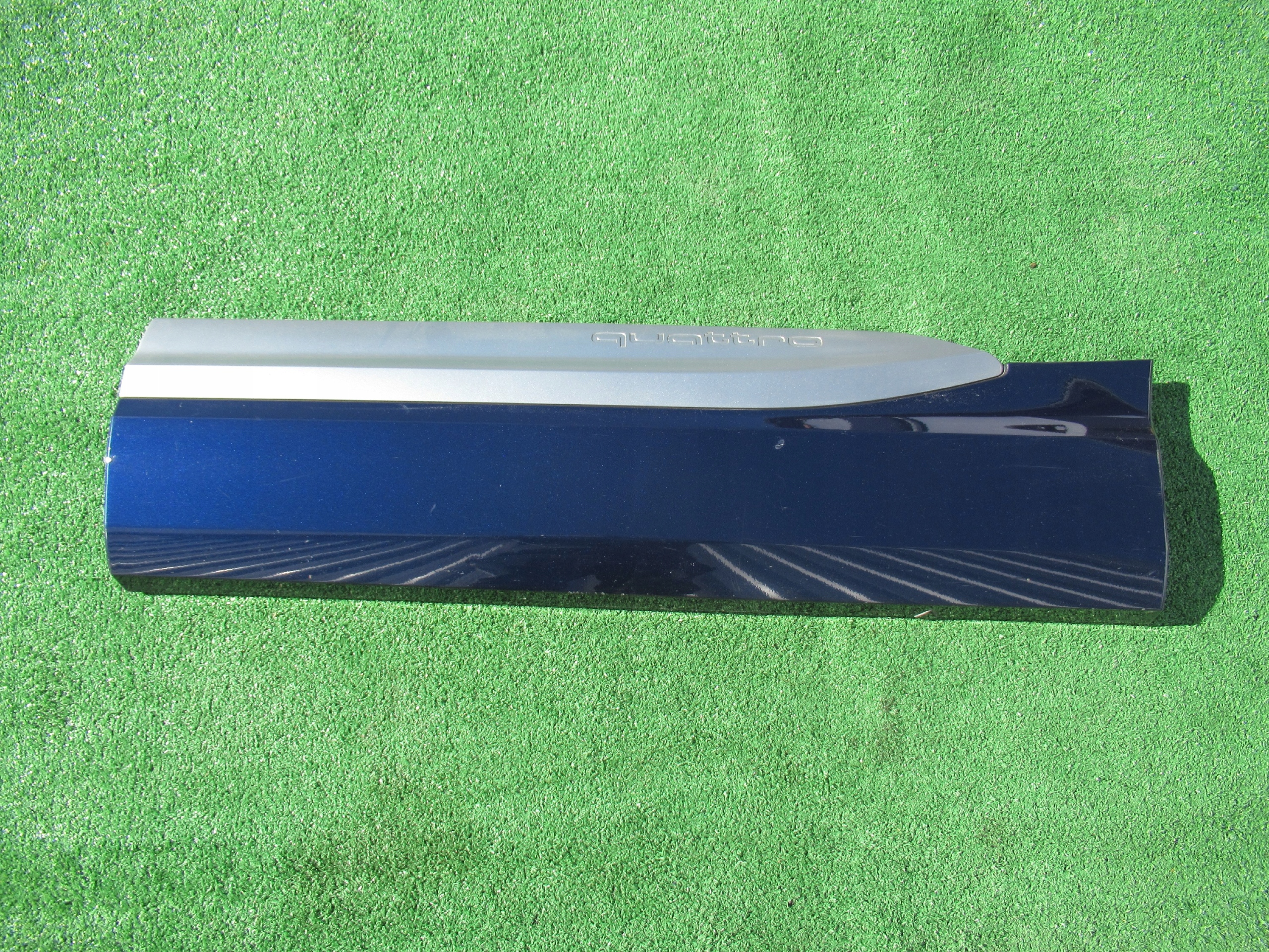 предметом моего аукциона является использованная оригинальная левая задняя нижняя дверная полоса для AUDI Q7 S-LINE цвет темно-синий металлик LX5H.