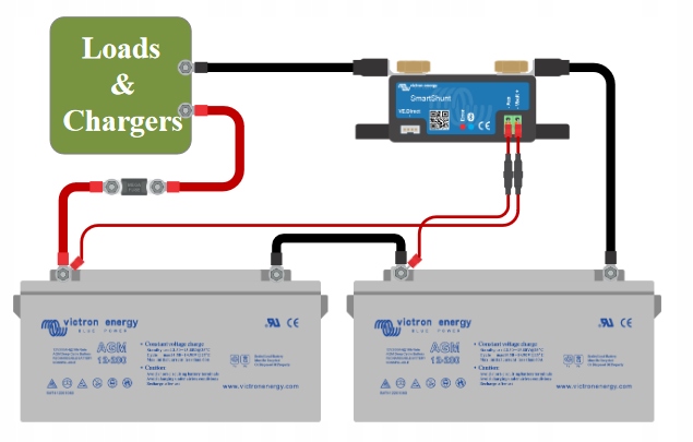 - SmartShunt является хорошей альтернативой монитору батареи BMV, особенно в системах, где мониторинг батареи необходим, но чрезмерное количество кабелей создает ненужный беспорядок.