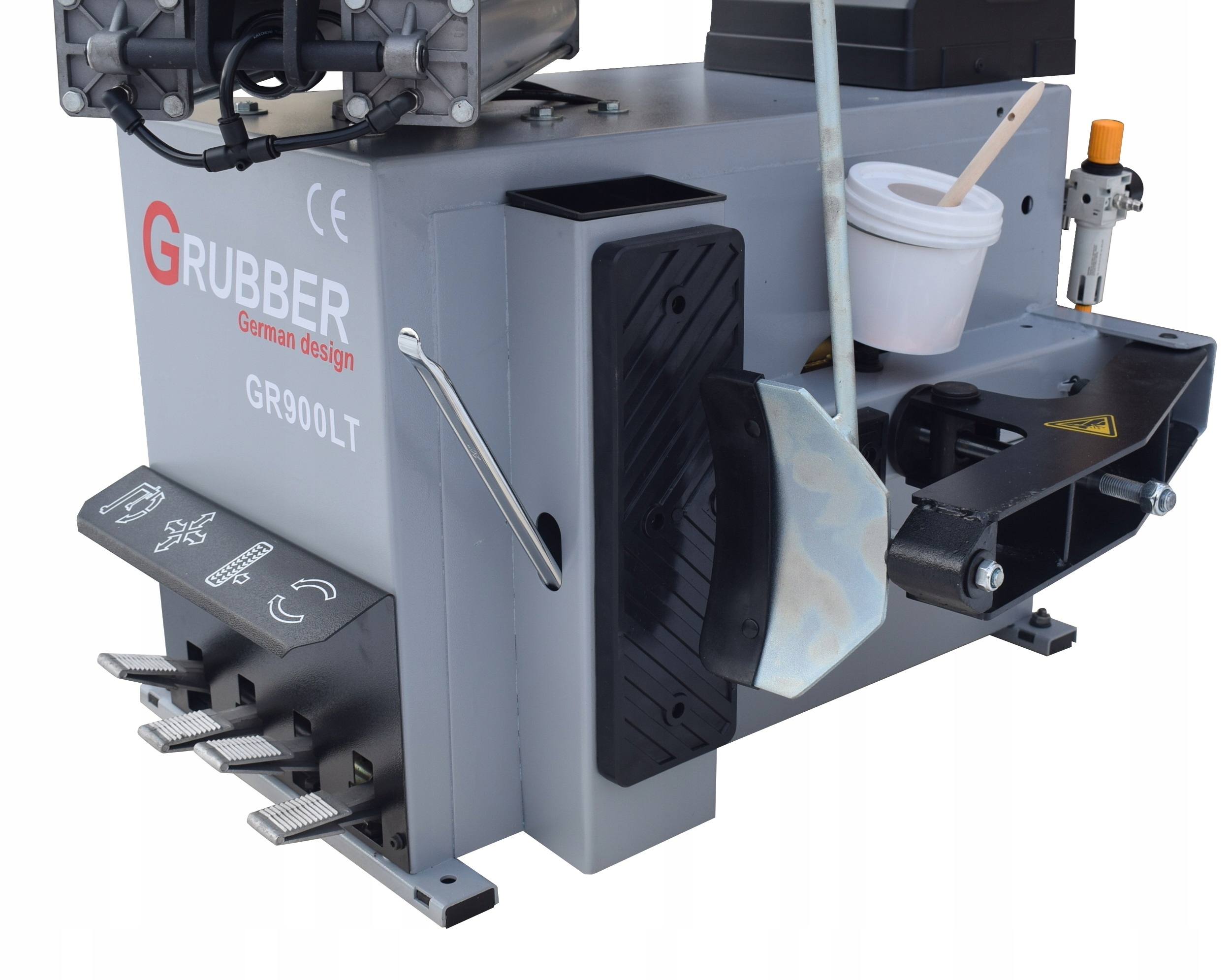 Монтажник оснащен очень сильным креплением для снятия низкопрофильных шин Run-Flat и PAX. С помощью этой оснастки вы снимаете все шины с обода, практически не используя собственную силу, управляя джойстиком вверх-вниз.