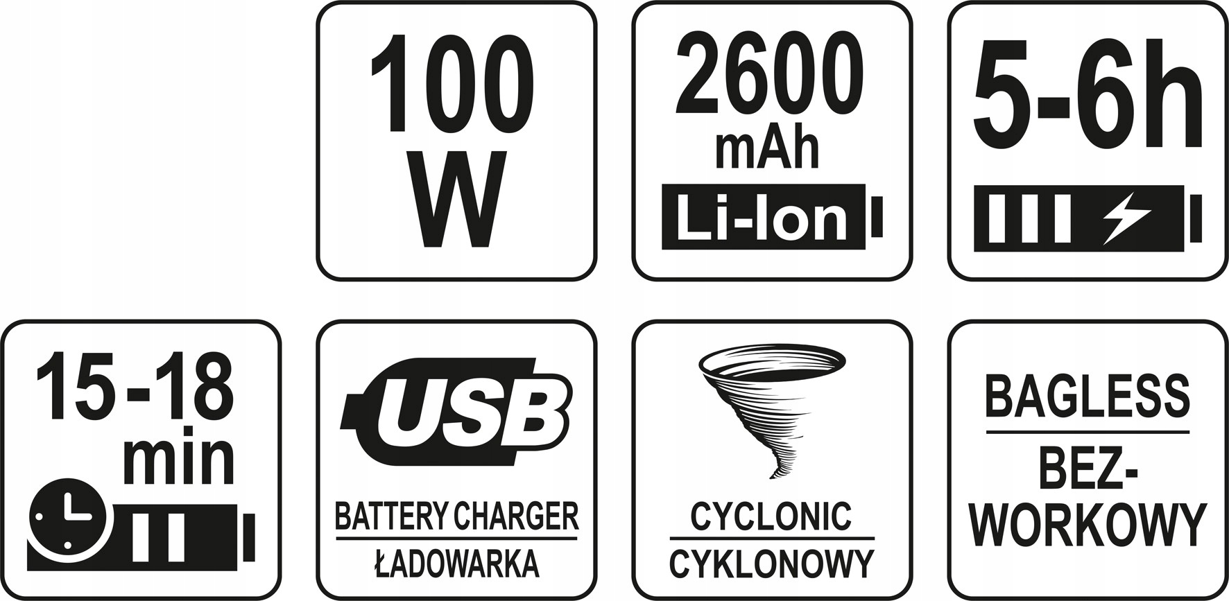 аккумулятор – сочетание сверхвысокой мощности и длительной работы возможно благодаря использованию целых 3 литий-ионных аккумуляторов общей емкостью 2600mAh. Таким образом, мы не теряем ни мощность за счет продолжительности работы, ни продолжительность работы за счет мощности всасывания