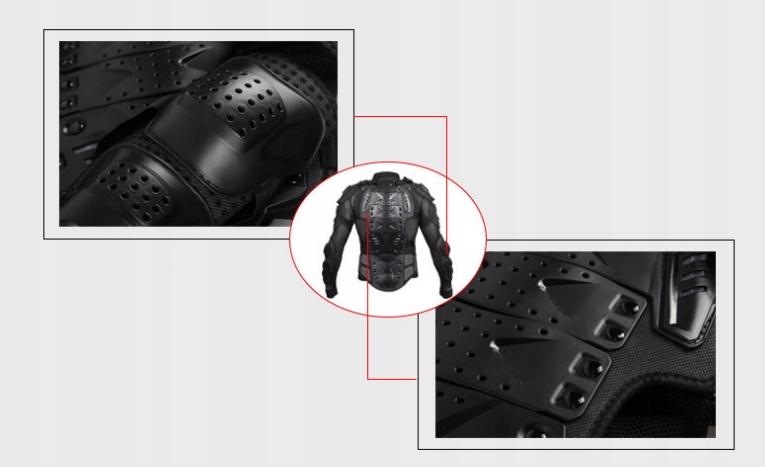 Мотоциклетная броня изготовлена из высококачественных материалов. Он соответствует строгим стандартам CE, что обеспечивает безопасность использования и гарантирует изготовление из безопасных для человека материалов. Толстые протекторы, сплошные швы, возможность выпячивания черепахи. Рекомендуется для автоспорта, но также найдет применение в других дисциплинах благодаря небольшому весу.