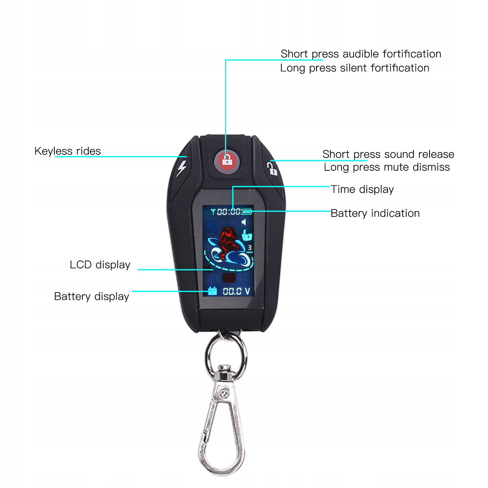 1. Многофункциональный: система сигнализации поддерживает такие функции, как запуск дистанционного управления, выключение пламени пульта дистанционного управления, блокировка от грабежа, автоматическая блокировка после 5 секунд парковки, функция блокировки сна, функция отключения звука и т. д.
