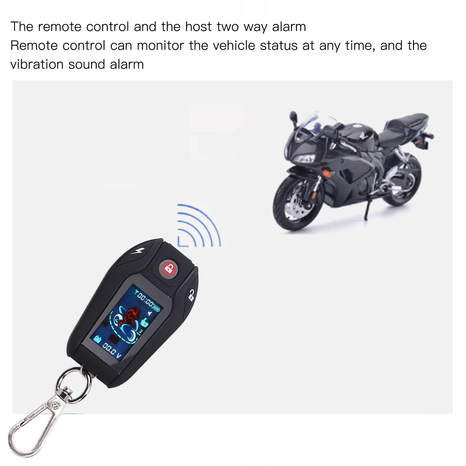 2. Сигнализация от 105 до 125 дБ: двусторонняя сигнализация между пультом дистанционного управления и хостом, пульт дистанционного управления может контролировать состояние транспортного средства в любое время, и звук вибрации капает.