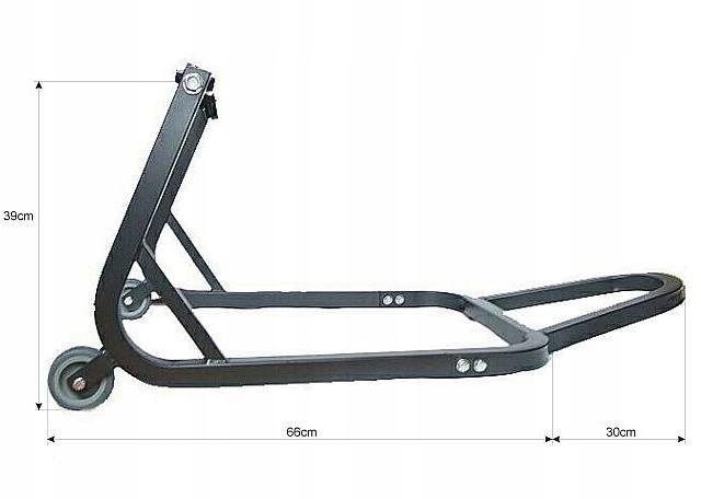 оснащен 2 колесами (снаружи с резиновым покрытием)для облегчения подъема и опускания мотоцикла .п>
