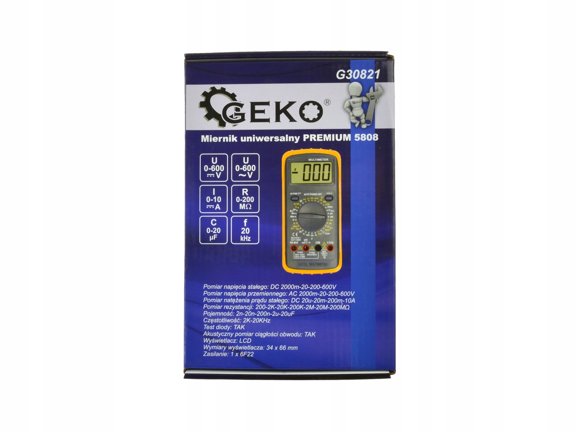 измерение: напряжения переменного тока, напряжения постоянного тока, тока переменного тока, тока постоянного тока, сопротивления, частоты, емкости, температуры и усиления трансистора (hFE)