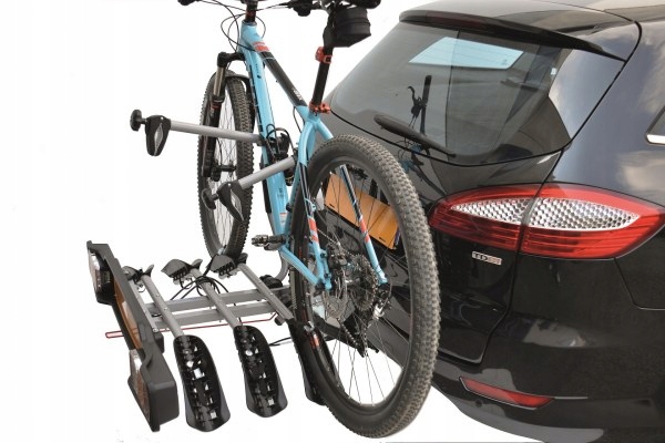 Универсальный держатель крюка для перевозки трех велосипедов . Он оснащен рычагами для второго и третьего велосипедов. Это самый дешевый багажник среди одобренных платформ с функцией наклона.