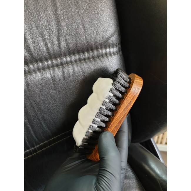 гладкая кожа в кожаной обивке автомобиля. Не используйте средство для анилиновой кожи, открытой кожи, нубука, велюра.