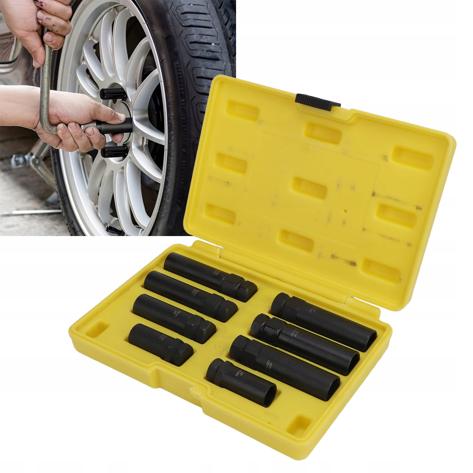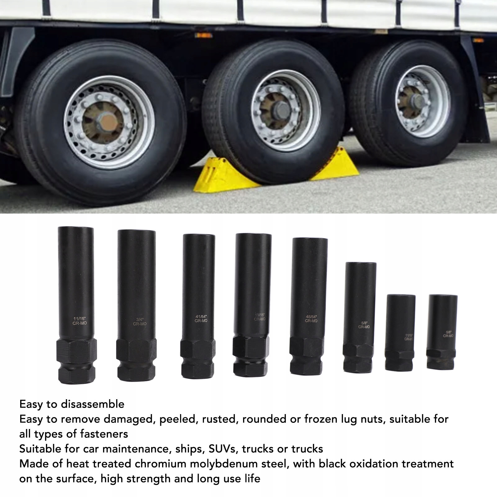 1. Легкое снятие гаек: набор ключей для гаек позволяет легко снимать поврежденные, ржавые или закругленные гайки, подходят для всех типов крепежа, обеспечивая бесперебойное обслуживание колес автомобиля.