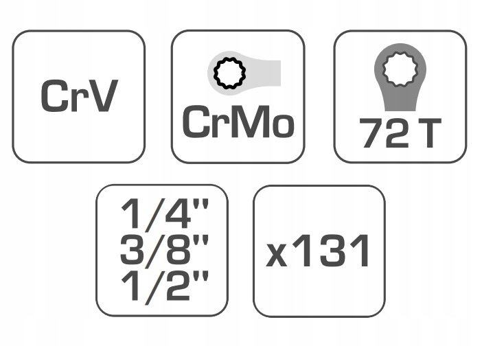 набор инструментов 131 шт., 1/2", 3/8" 1/4"