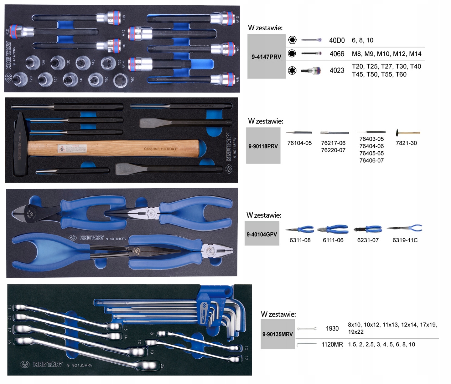 Набор инструментов KING TONY картридж для тележки 320ele.