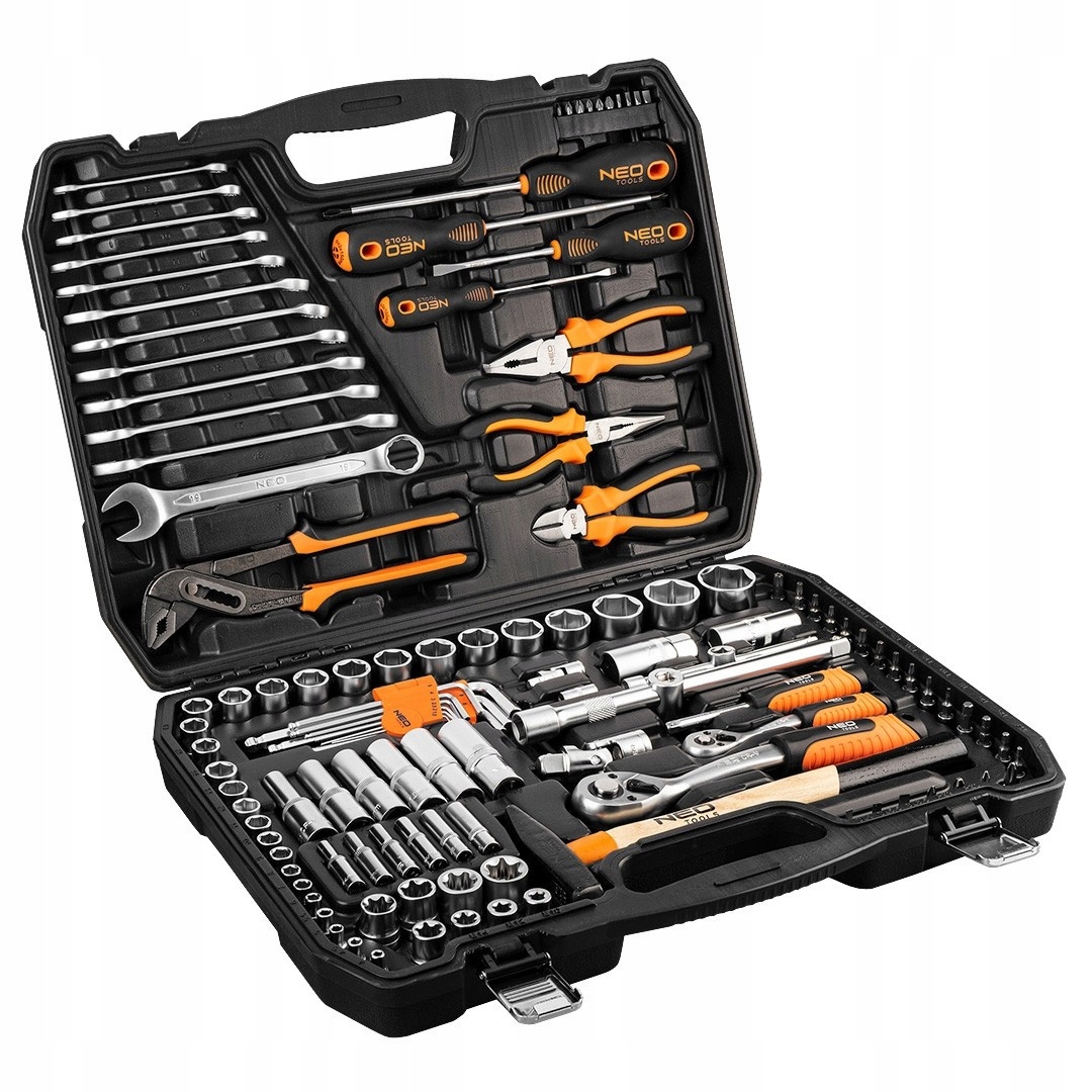 набор инструментов 122 элемента 10-196 марки NEO - это набор, предлагаемый в удобном футляре для хранения и транспортировки инструментов. Продукт имеет 25-летний гарантийный срок. Это отличное предложение для профессионалов и мастеров-для домашнего и профессионального использования. Набор включает в себя: 1/2 " шестигранные головки 15 шт.: 12, 13, 14, 15, 16, 17, 18, 19, 20, 21, 22, 24, 27, 30, 32 мм, шестигранные насадки длиной 1/2" 6 шт.: 10, 12, 13, 14, 17, 19 мм, храповик 1/2 "72 зубца 255 мм, удлинитель 1/2" 1 шт.: 250 мм, Насадки для свечей 1/2 " 2 шт.: 16 мм и 21 мм, карданный шарнир 1/2", Т-образный шарнир 1/2", торкс-колпачок 1/2" 8 шт.: E10, E12, E14, E16, E18, E20, E22, E24, шестигранные головки 1/4" 13 шт.: 4, 4.5, 5, 5.5, 6, 7, 8, 9, 10, 11, 12, 13, 14 мм, шестигранные насадки длиной 1/4" 6 шт.: 4, 5, 6, 7, 8, 9 мм, трещотка 1/4 "72 зубца 155 мм, Т-образная ручка 1/4", адаптер для бит 1/4", карданный шарнир 1/4", карданный шарнир 1/4", удлинитель 1/4 " 1 шт. 150 мм, Отвертка 1/4" 150 мм, Отвертка 1/4" 150 мм, Отвертка 1/4 " 22 шт.: плоские 4, 5,5, 6,5 мм, PZ2, PZ3, PH2, PH3, H3, H4, H5, H6, T8, T10, T15, T20, T25, T27, TT10, TT15, TT20, TT25, TT40; плоские ключи 12 шт.: 8, 9, 10, 11, 12, 13, 14, 15, 16, 17, 18, 19 мм, плоская отвертка 2 шт.: 4x100 мм, 6, 5x100 мм, Отвертка с крестообразным шлицем 2 шт.: PH2x150 мм, PH3x150 мм, плоскогубцы 1 шт.: 160 мм, режущие плоскогубцы 1 шт.: 160 мм, универсальные плоскогубцы 1 шт.: 180 мм, регулируемые плоскогубцы 1 шт.: 250 мм, молоток 300 г, биты 1/4 " 10 шт.: PH0, PH1, PH2, PZ0, PZ1, PZ2, плоские 3, 4, 5, 6 мм; шестигранные ключи 9 шт.: 1.5, 2, 2.5, 3, 4, 5, 6, 8, 10 мм.п>